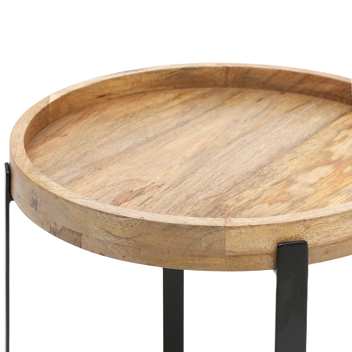 HARVEY coffee table is characterized by a minimalist design. It consists of a round top made of natural wood and a black metal base. This color combination creates a cohesive whole. In addition, the top has put up sides, so it protects objects from falling. The dimensions of the product are 42 x 42 x 45 cm.