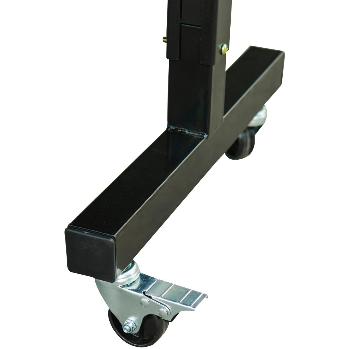 8 strong, swivel transport wheels with built-in locking mechanism and the ability to fold the table make it easy to store and move it after the game is over.