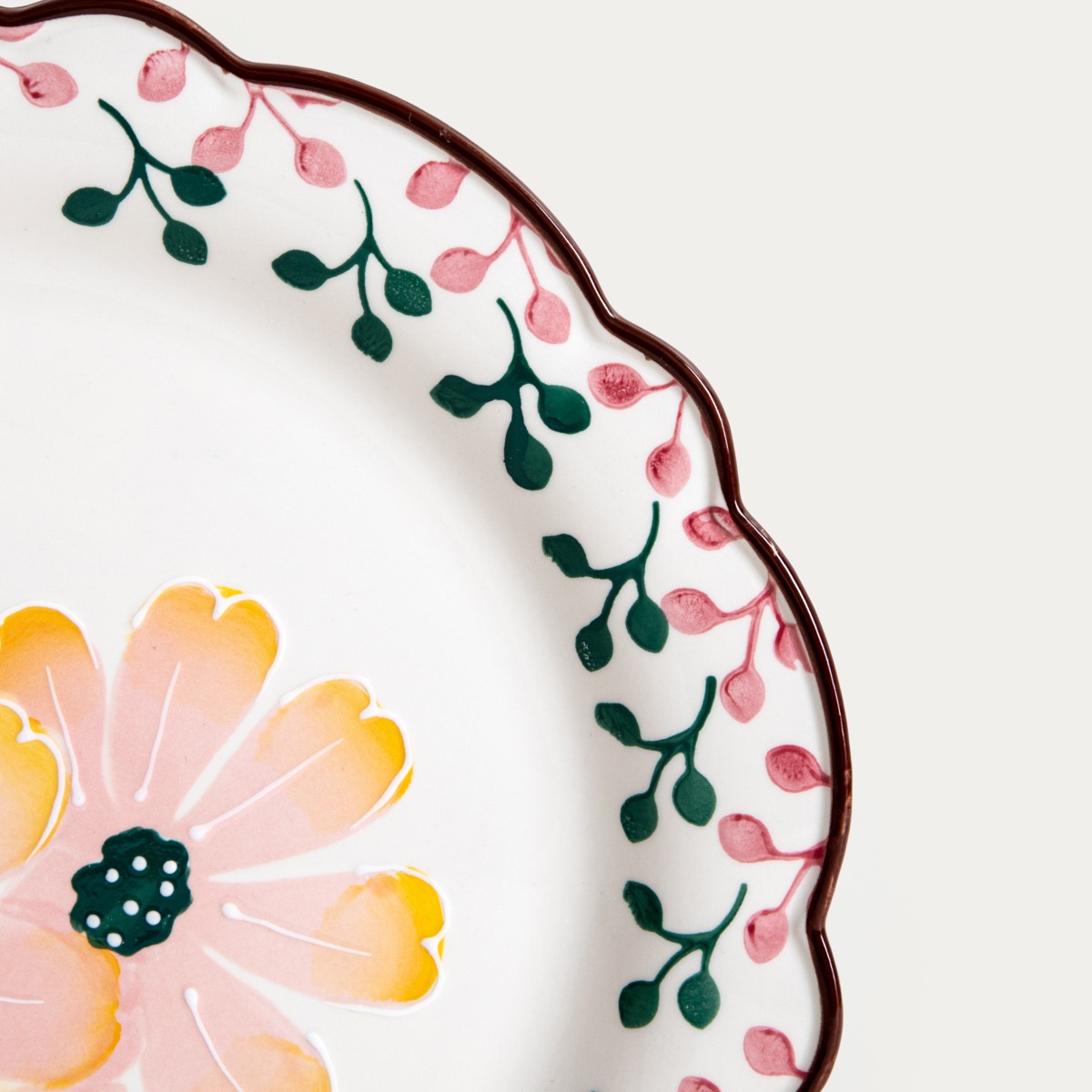 The NOYA dinner plate brings a warm, cheerful atmosphere to the table thanks to its decorative pattern inspired by floral motifs. The centrally placed flower attracts the eye and makes each dish look more appetizing. The bright background combined with vivid colors gives the whole set a light and homely feel, which is conducive to celebrating meals together.