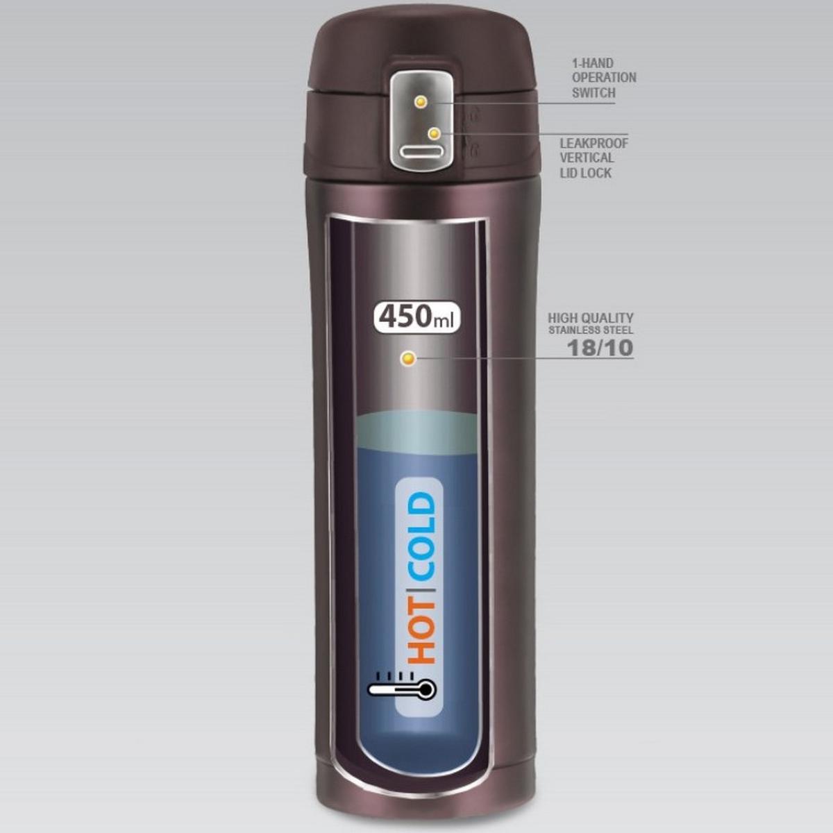 COLLECTION 450 ML MAESTRO BROWN THERMAL MUG is the perfect companion for everyday activities – keeps drinks hot or cold for hours, preserving their freshness and taste. Ergonomic shape and locking lid ensure comfort in any conditions – at work, on the road and in everyday life.