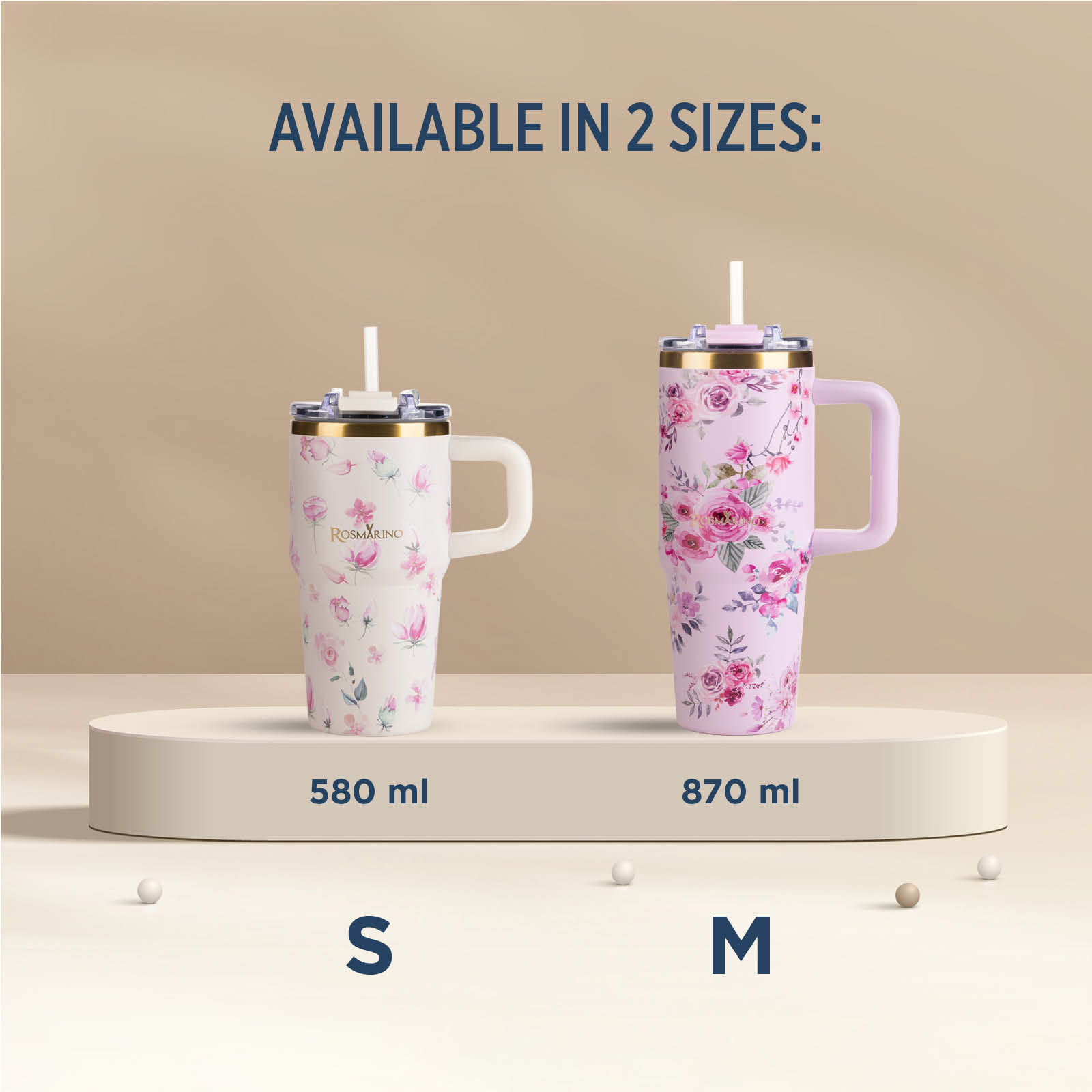 Thermal tumbler Rosmarino MegaCup Roses 580 ml – cream