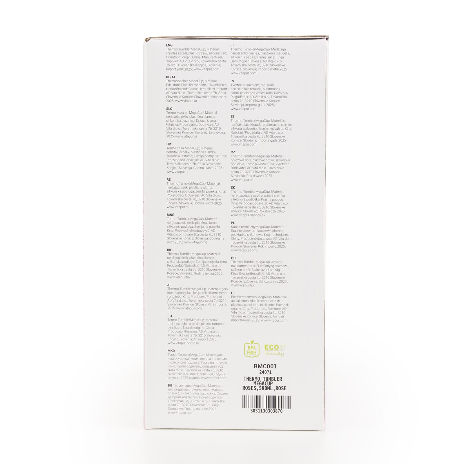 Thermal tumbler Rosmarino MegaCup Roses 580 ml – pink