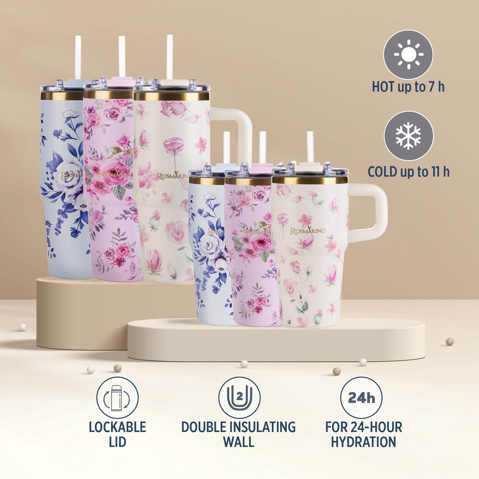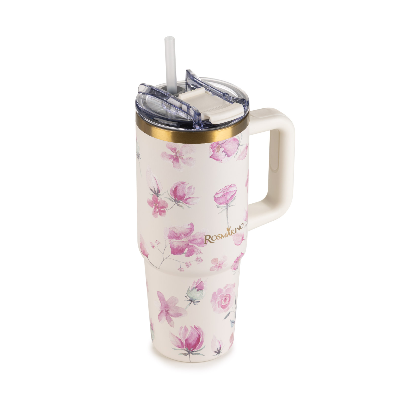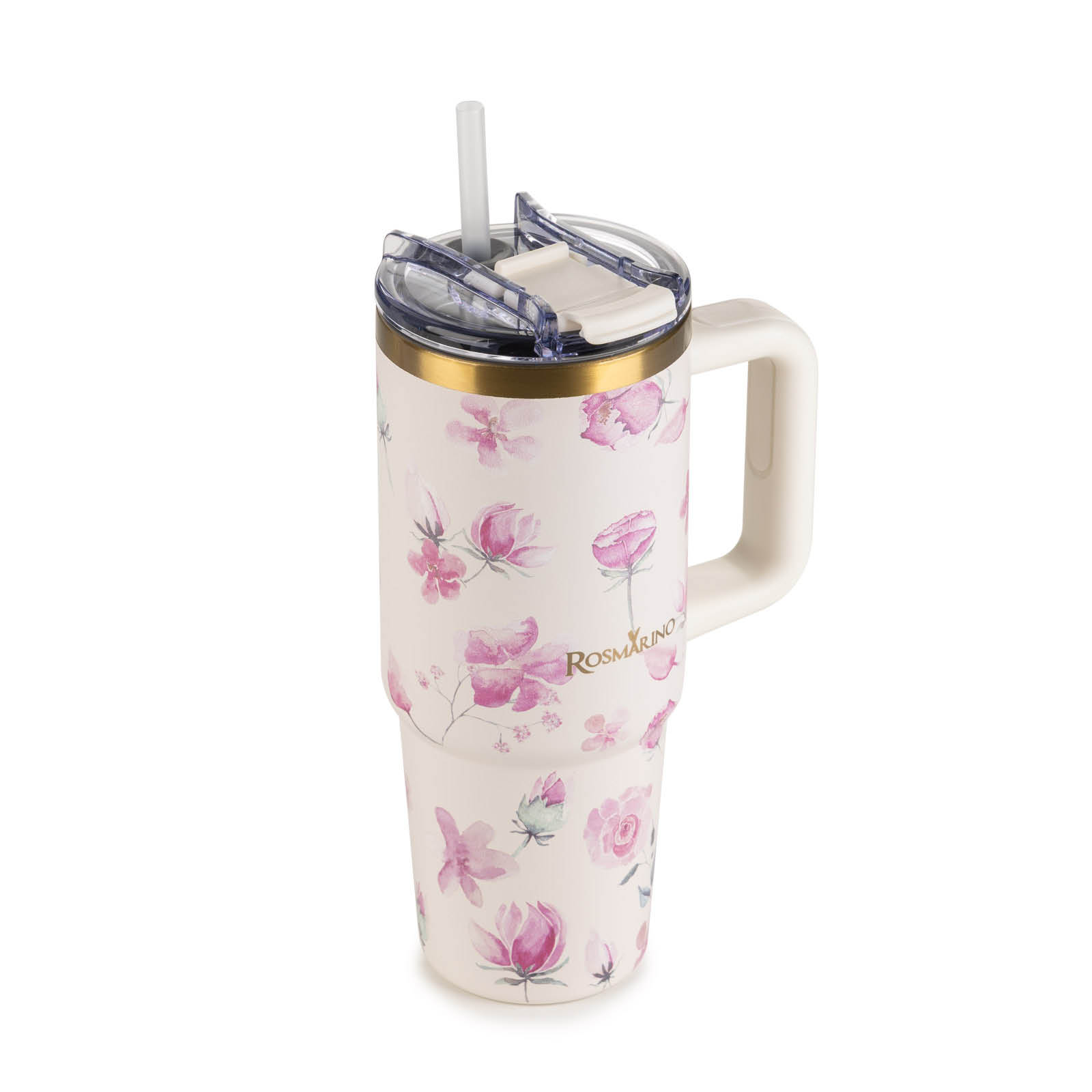 Thermal tumbler Rosmarino MegaCup Roses 870 ml – cream
