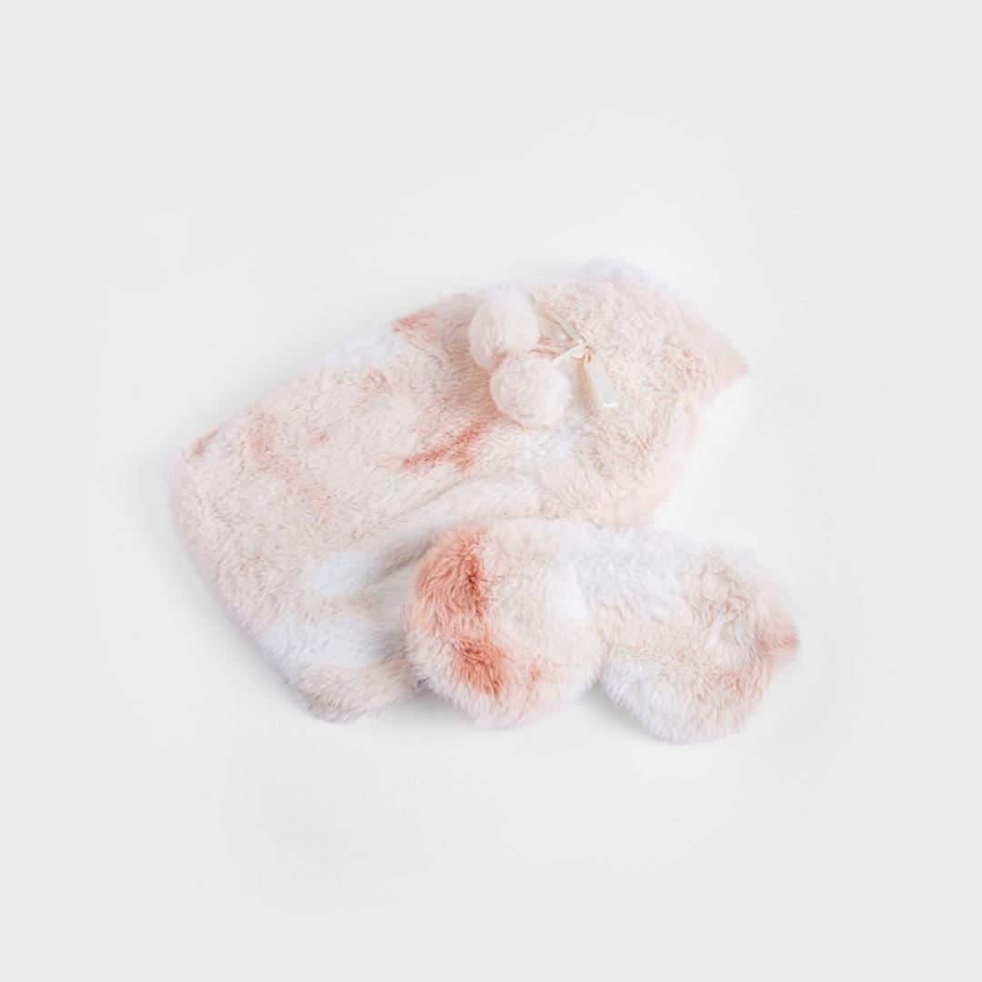 Discover comfort and warmth with the FLUTTER hot water bottle. The set includes a 2-liter hot water bottle and a soft eye mask, making it the perfect companion for relaxation and rest. The charming, furry case in a subtle color adds elegance and coziness, while decorative pompoms add a stylish touch.