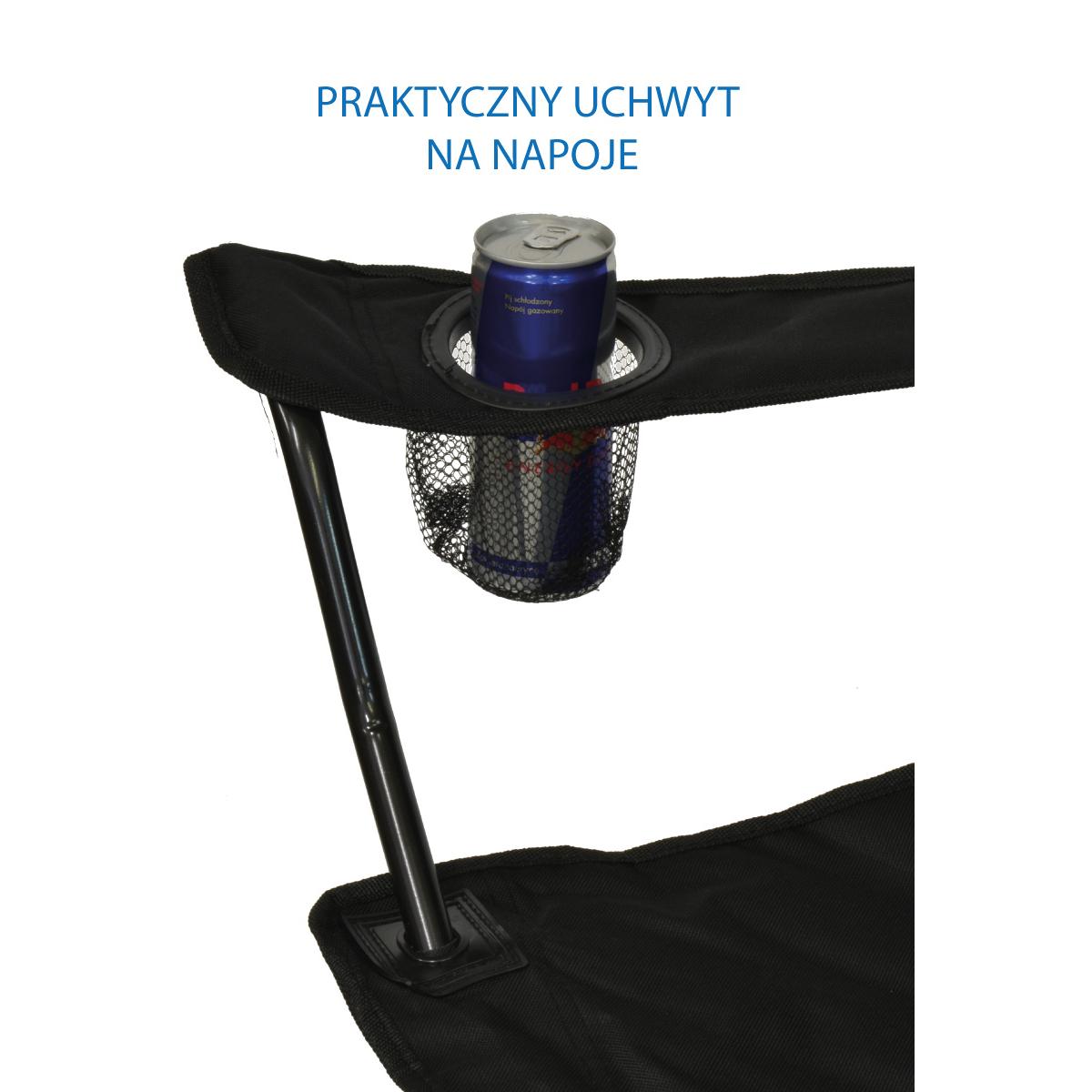 FOLDINGTOURIST CHAIR 50X50X80CM BLACK is the basis of your successful camping trip, vacation, beach, lake or just on the allotment. Thanks to its easy-to-use spider leg design, it is ready whenever you need it, because this folding and unfolding system is instant. The material from which the seat and backrest are sewn will give it great durability and water resistance because it is resistant to abrasion, stretching and tearing. Easy to clean, when it gets dirty just wipe it with a damp cloth. Ergonomic design of the chair will provide you with the comfort of sitting for many hours, and comfortable armrests will allow you to assume a comfortable position relieving pressure on the spine. The frame of the chair made of solid and durable steel tubes will hold a load of up to 100 kg!