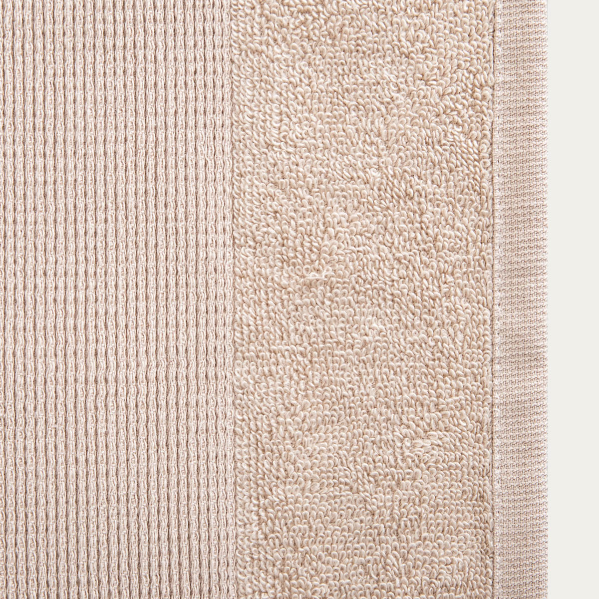 The handy 50 × 90 cm format will work perfectly as a hand, face or hair towel. It will be a convenient choice for everyday use in the bathroom, as well as a practical companion for visits to the gym, pool or short trips. The small size makes it easy to store and quick to dry after use. The beige color scheme blends well with modern, minimalist interiors and arrangements inspired by natural style.