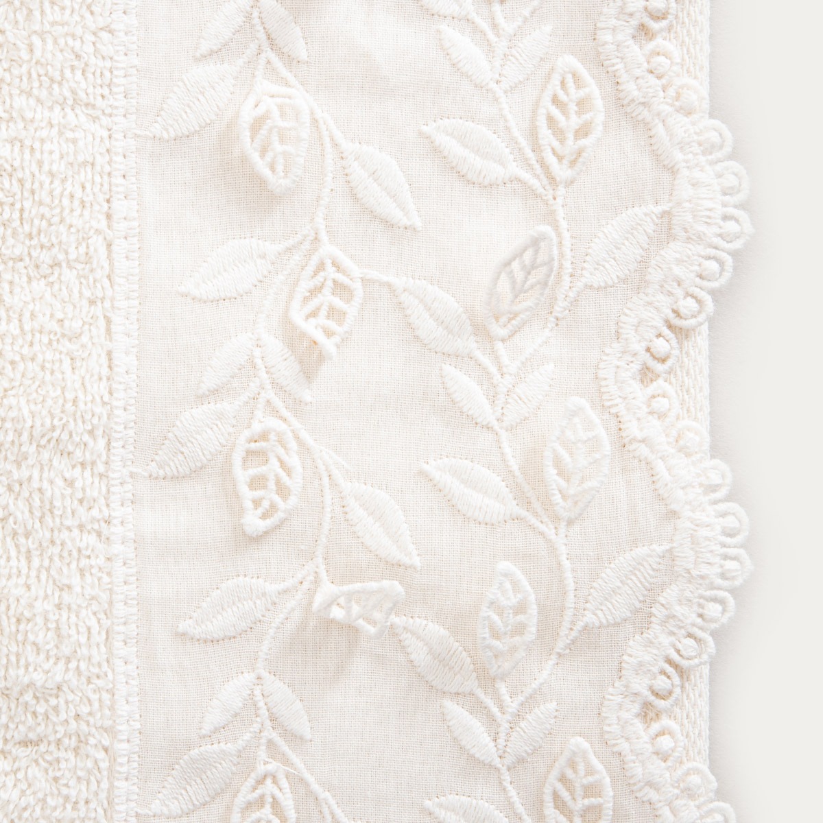The towel is made of high-quality 500 gsm cotton, which provides excellent absorbency and softness. The natural fibers are skin-friendly and comfortable for everyday use. The embroidery and lace trim have been carefully crafted, with durability and aesthetics of the product in mind. Wash at max. 40°C and iron at up to 110°C.
