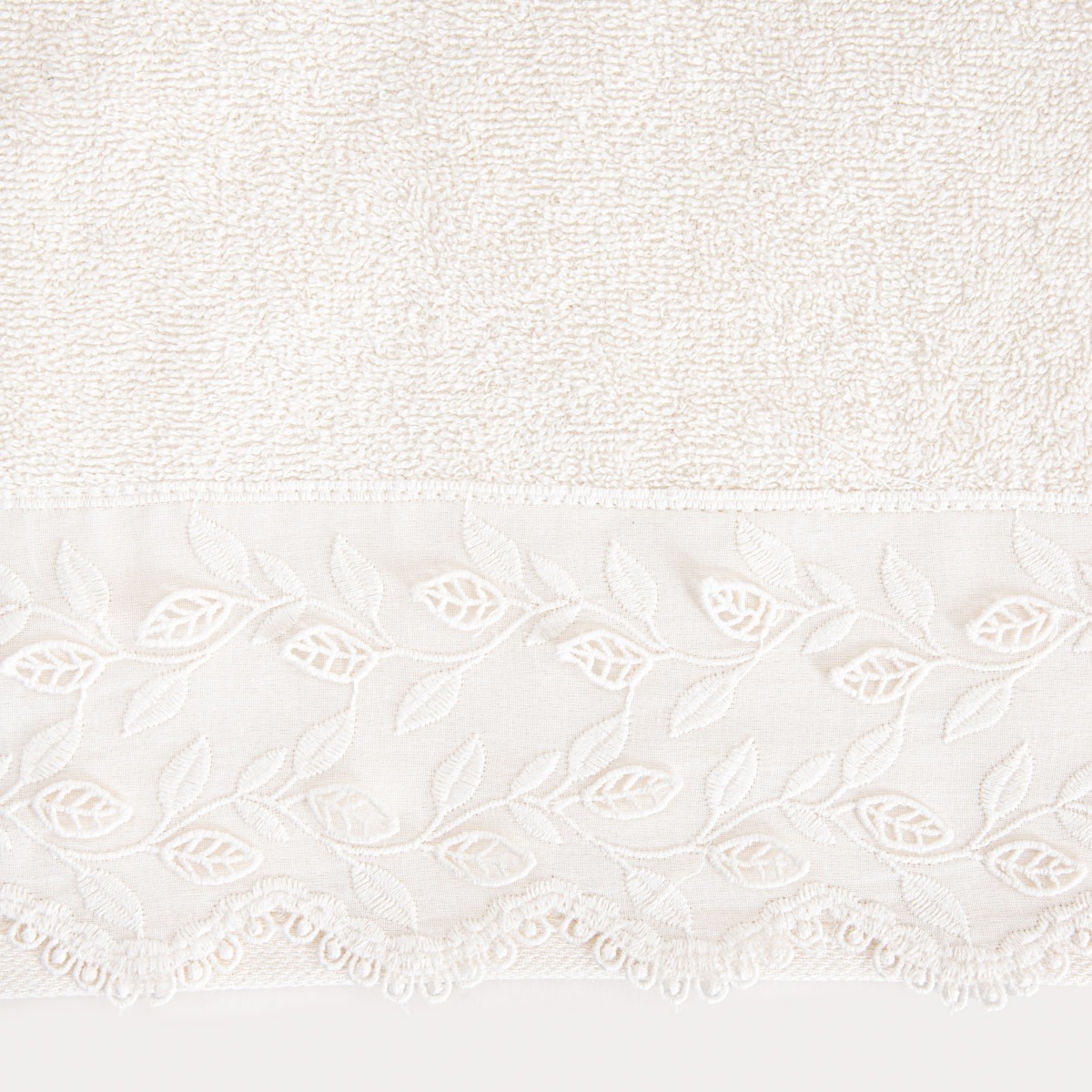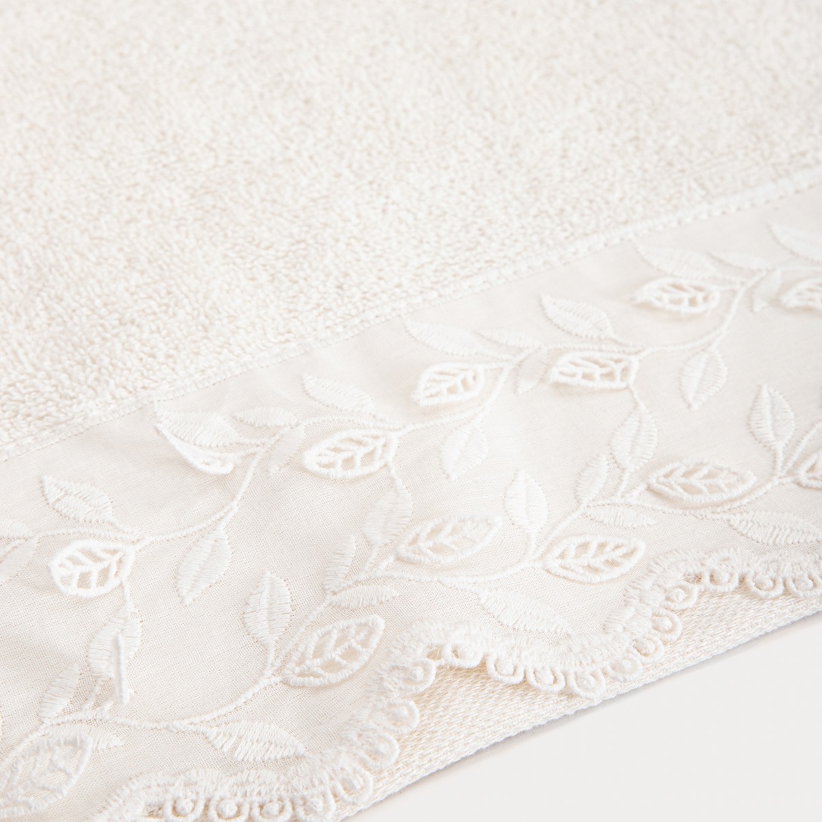 Made of high-quality cotton, the towel is characterized by good absorbency and softness. The natural fibers are skin-friendly and provide comfort during everyday use. The embroidery and lace trim have been made with attention to durability and aesthetics.
