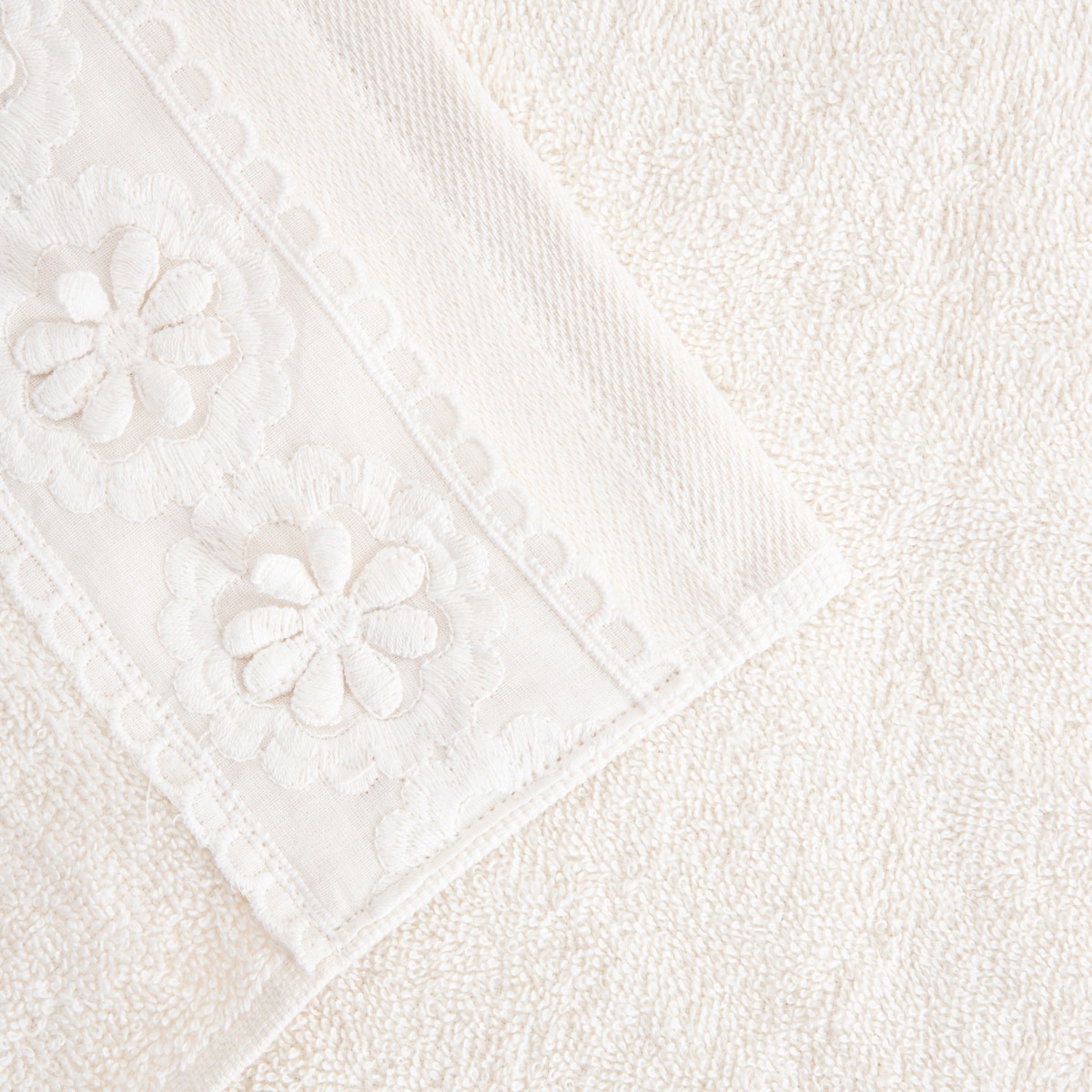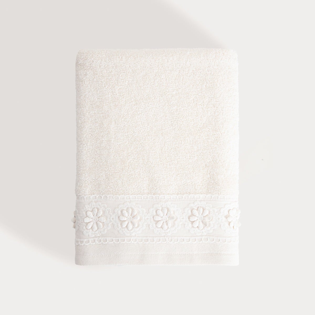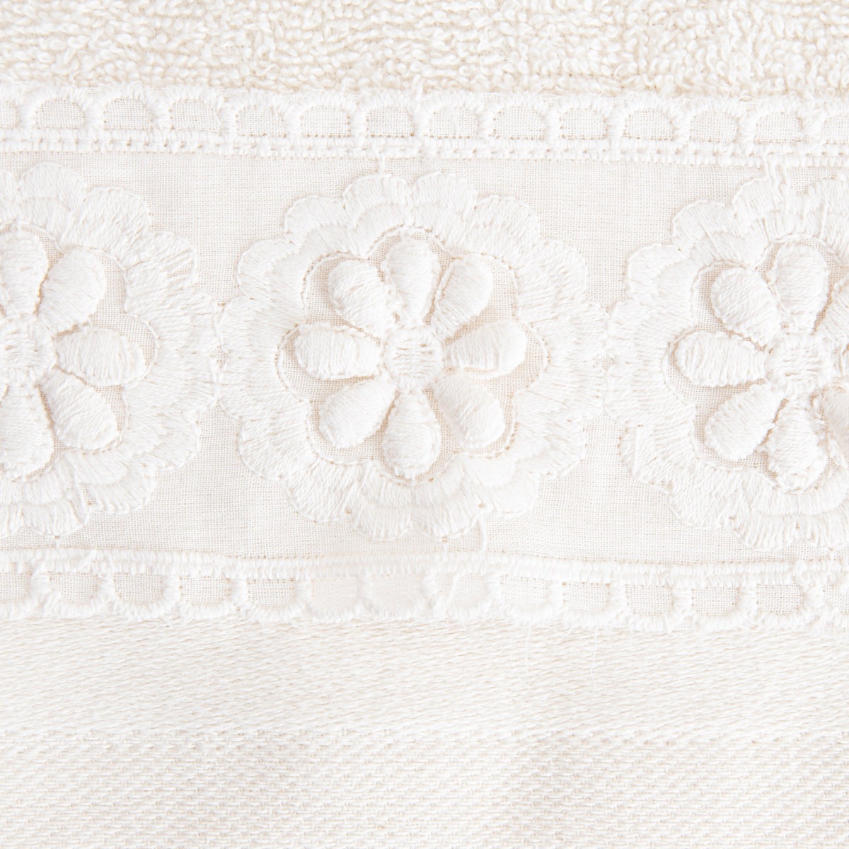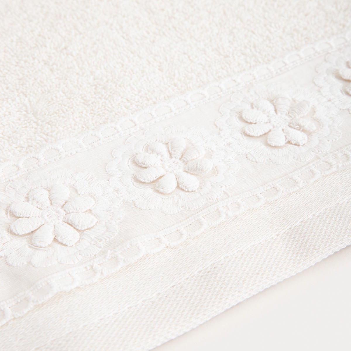 The 70 x 130 cm towel is perfect as a bath towel for daily body drying. It will be a beautiful addition to a bathroom decorated in a classic, romantic or natural style. The decorative embroidery means that the towel can also serve a decorative function, emphasizing the aesthetics of the interior and giving it a cosier feel.