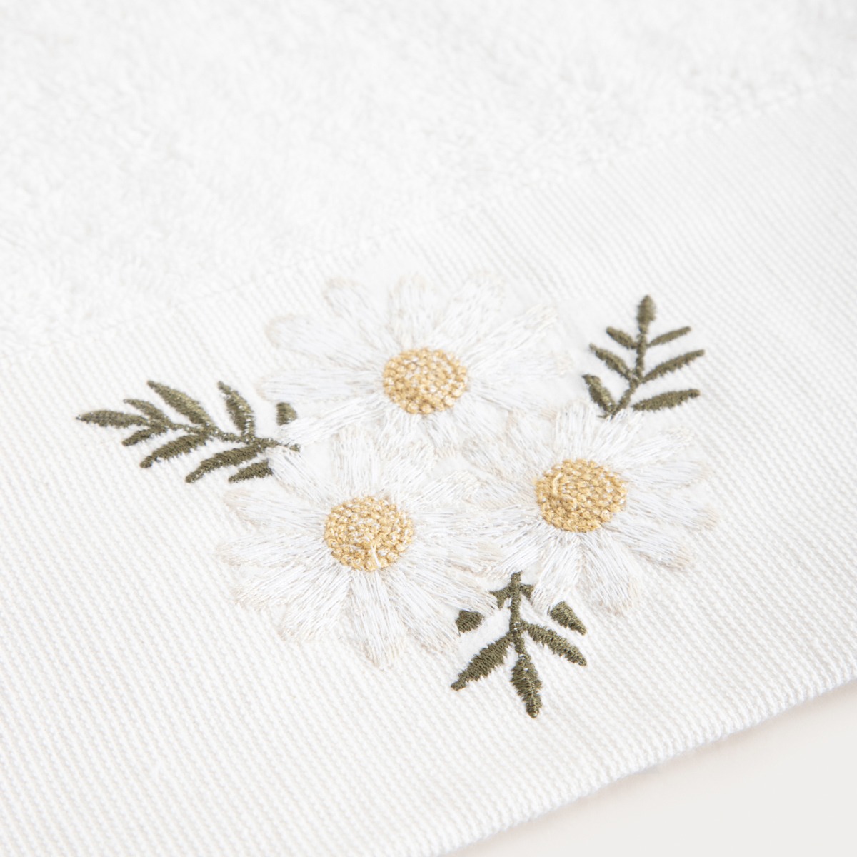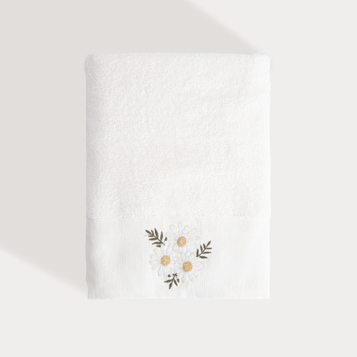 Towel with embroidered daisies 70 x 130 cm