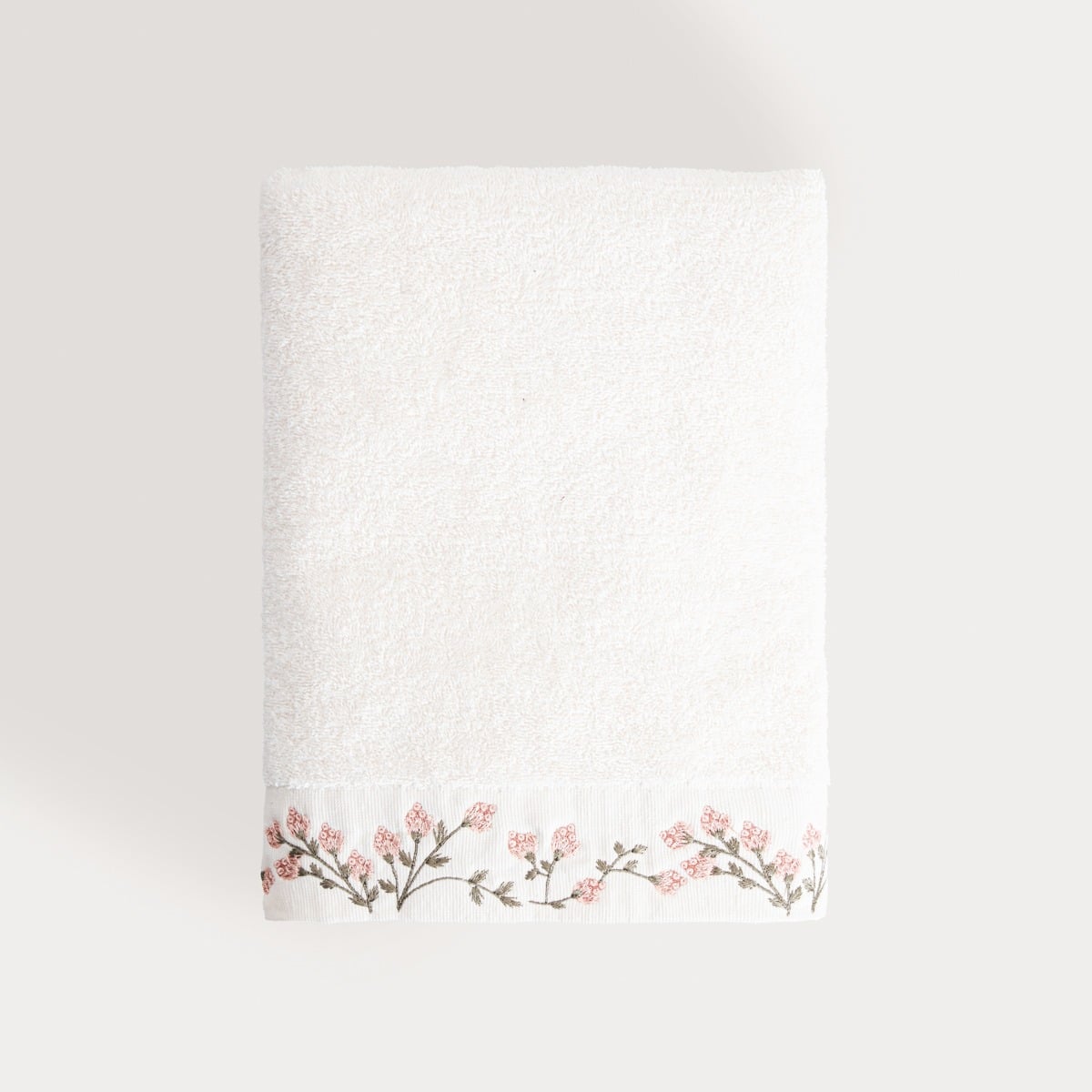 Bath towel with embroidered pink flowers 70 x 130 cm