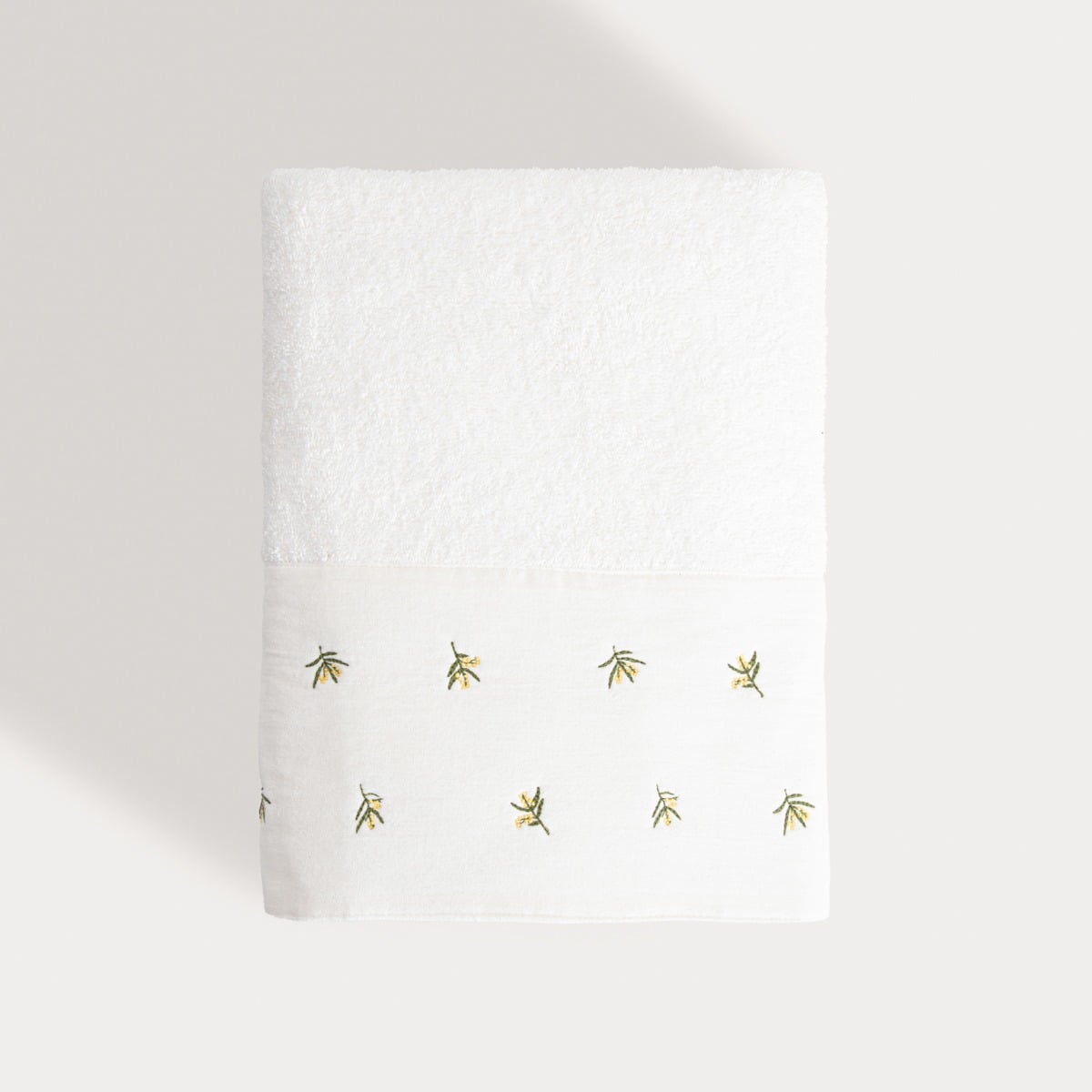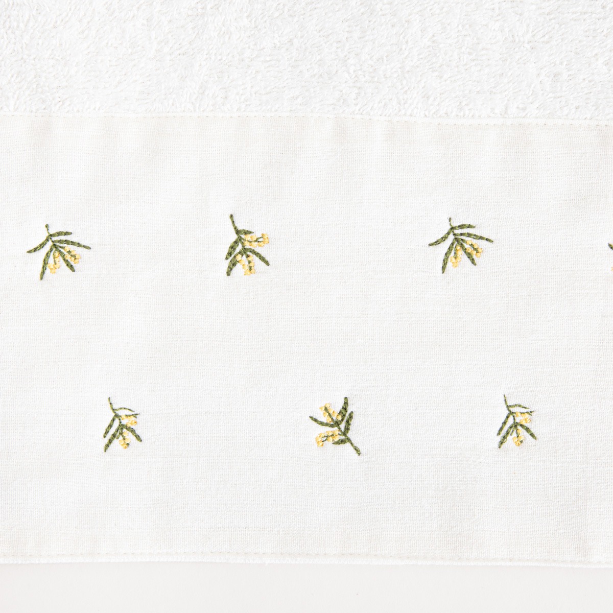 The YORK towel with decorative embroidery 70 x 130 cm is a proposal that brings natural elegance and a calm rhythm to everyday moments in the bathroom. Delicate floral embroidery subtly adorns the lower part of the towel, creating a harmonious whole with the light background. The soft cotton wraps the skin after bathing, giving a feeling of comfort and homely relaxation.