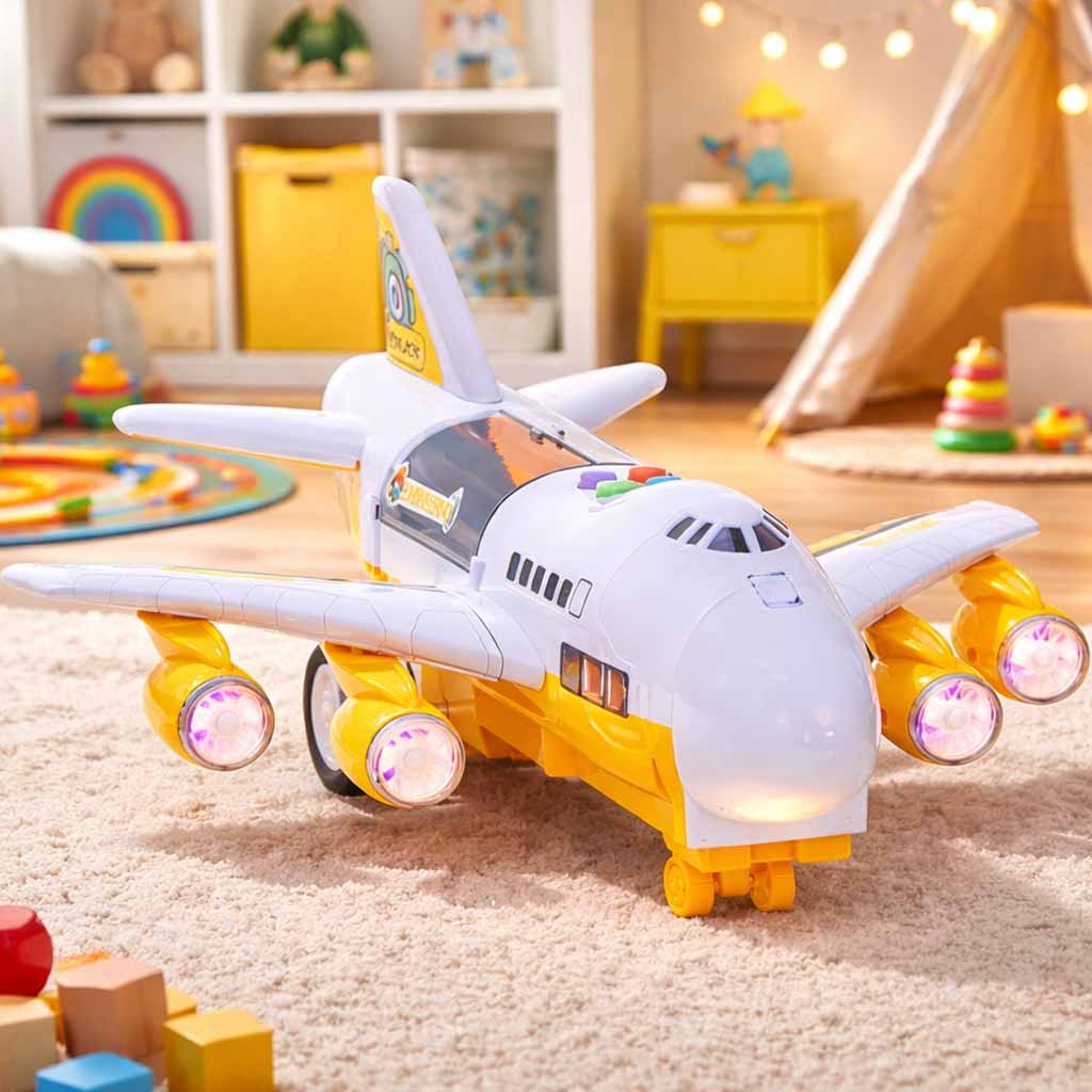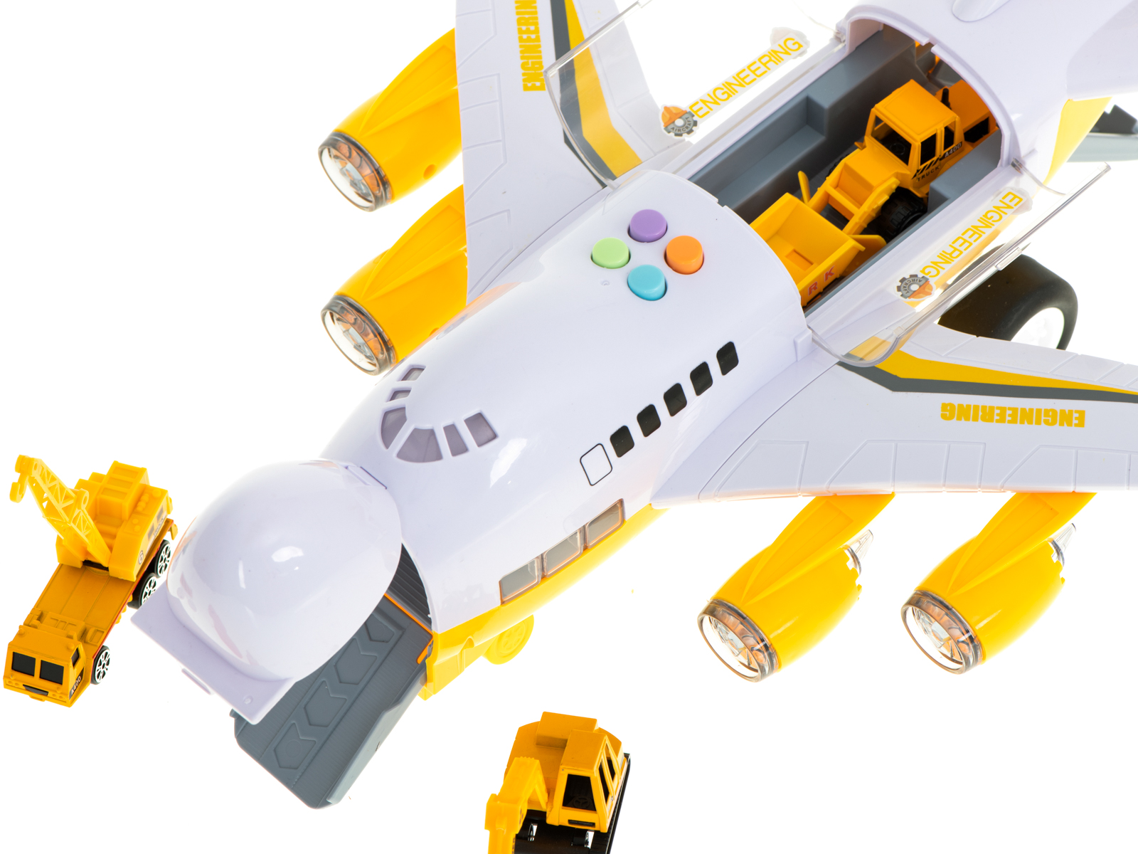 The plane, on its deck, can transport the included cars. It also has luminous LEDs placed in the engines.