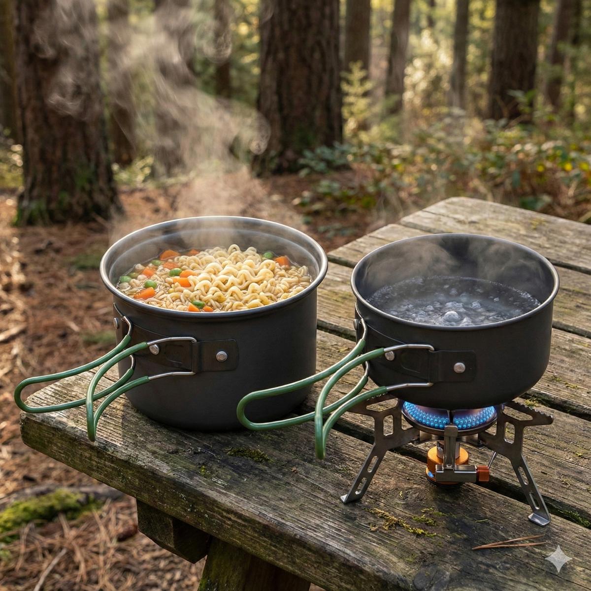 Set of 2 pots – two different sizes allow you to prepare both main dishes and side dishes. The set will work well for solo trips and camping trips for two.