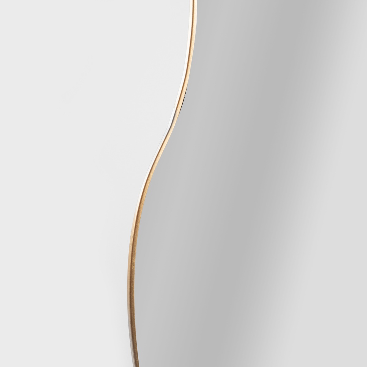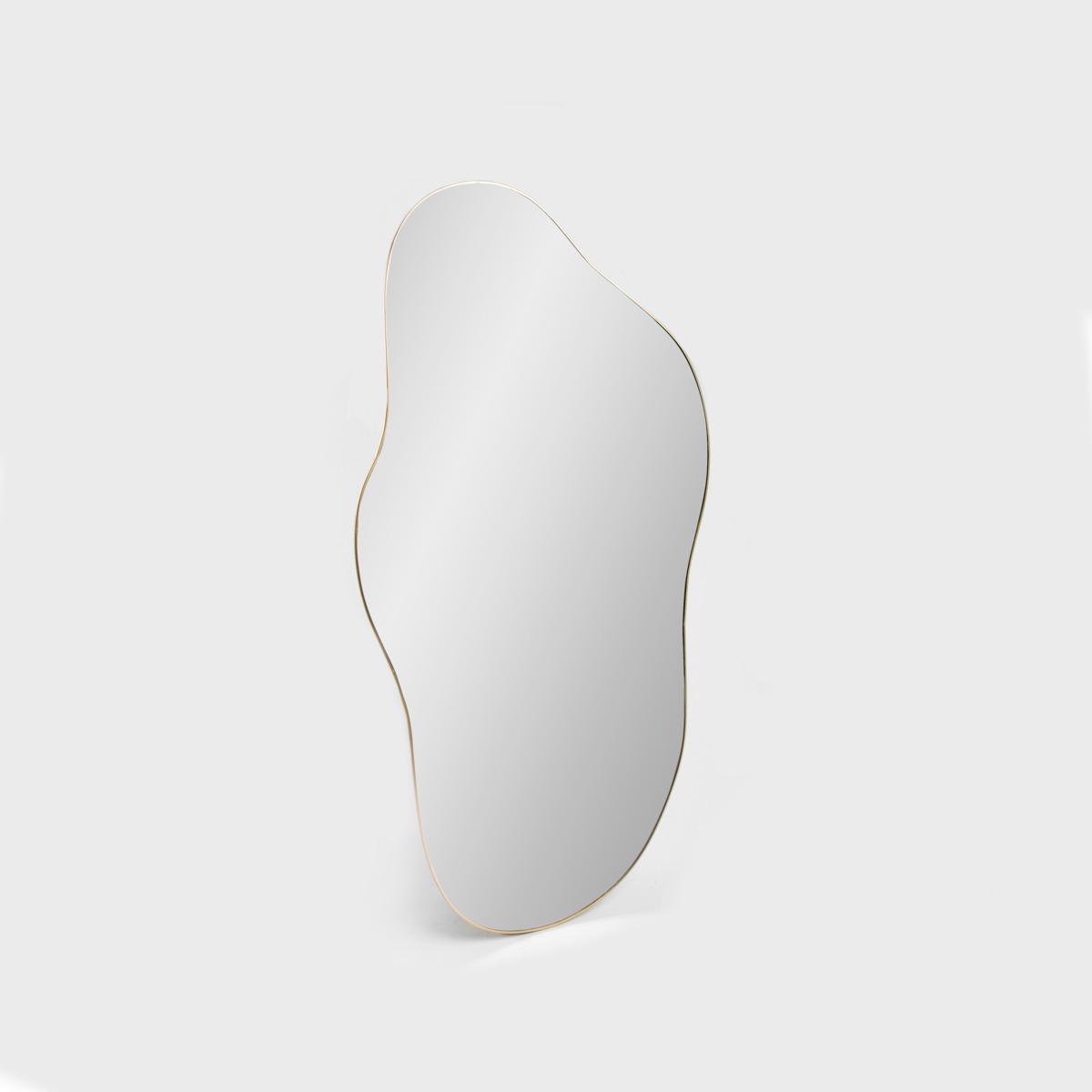 Discover the modern MINSI mirror, which with its irregular shape attracts attention and gives a unique character to the interior. The golden frame subtly emphasizes its form, adding elegance and class to the whole.