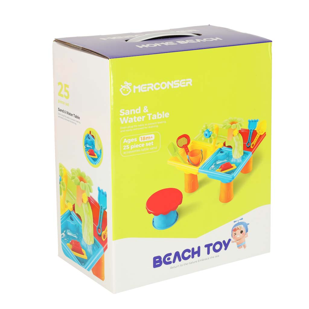 The set includes a table with sand and water sections and a rich package of accessories. The set includes accessories that enable play in a variety of ways – from digging andshifting, to pouring and controlling the direction of water.