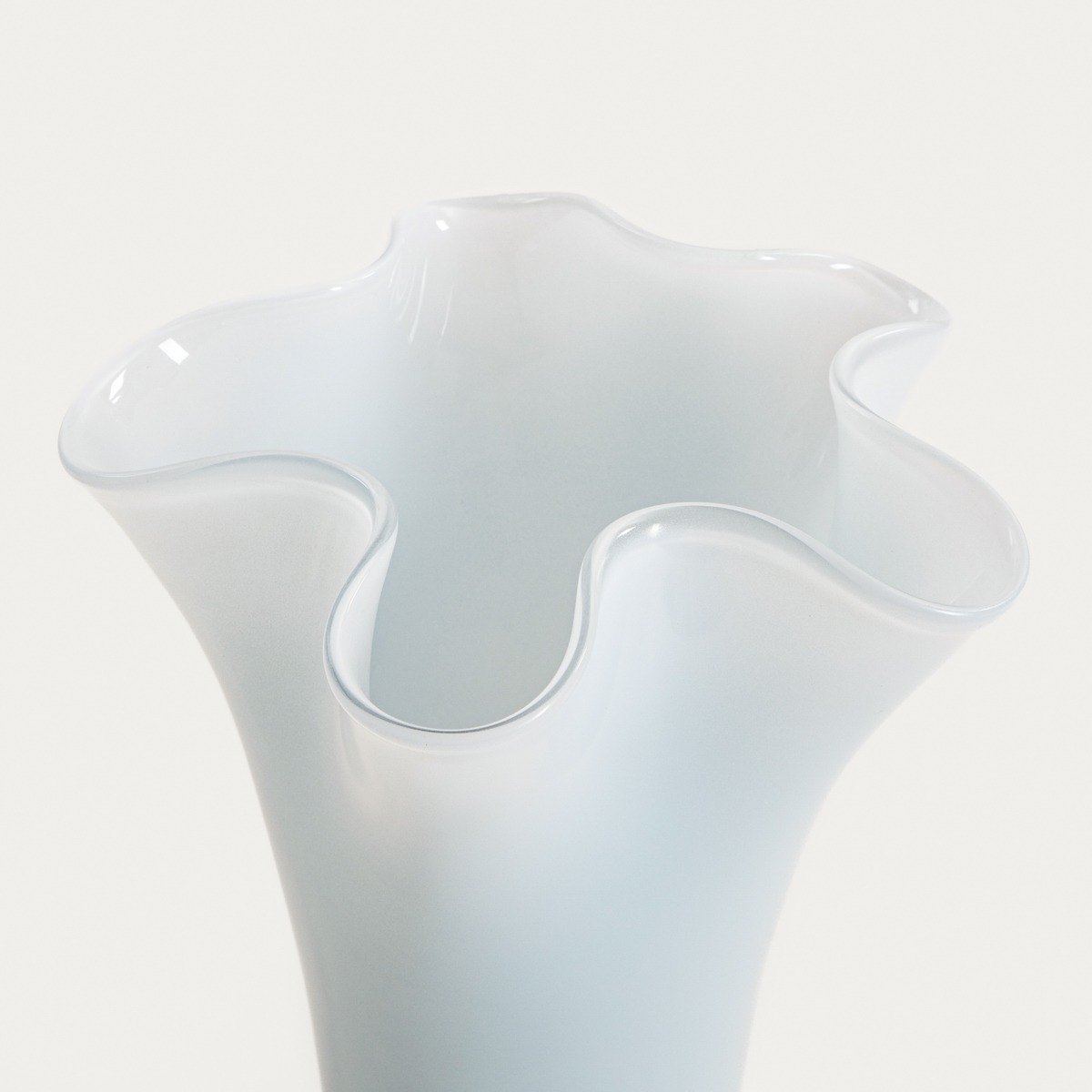VEYORA glass vase blue with waves 20x20x20 cm attracts attention with its soft lines and subtle play of light reflecting off the glass. The wavy edge gives it a slightly artistic expression, so it looks beautiful even without additional decorations. The blue shade brings calm and freshness to the interior, building an atmosphere conducive to tranquility and aesthetic harmony.