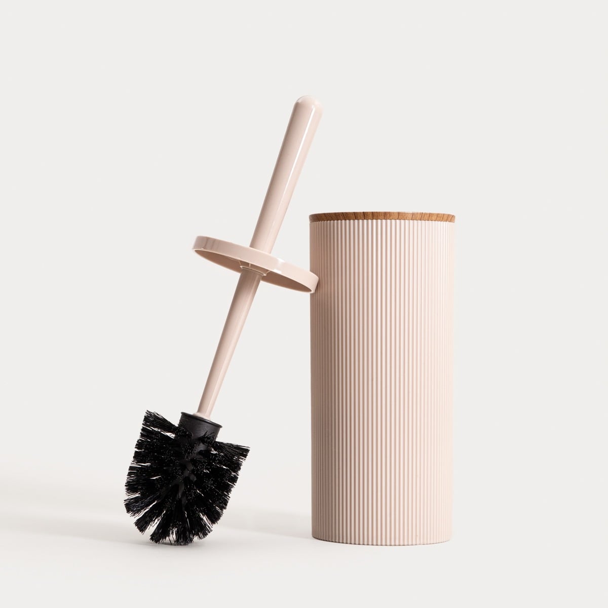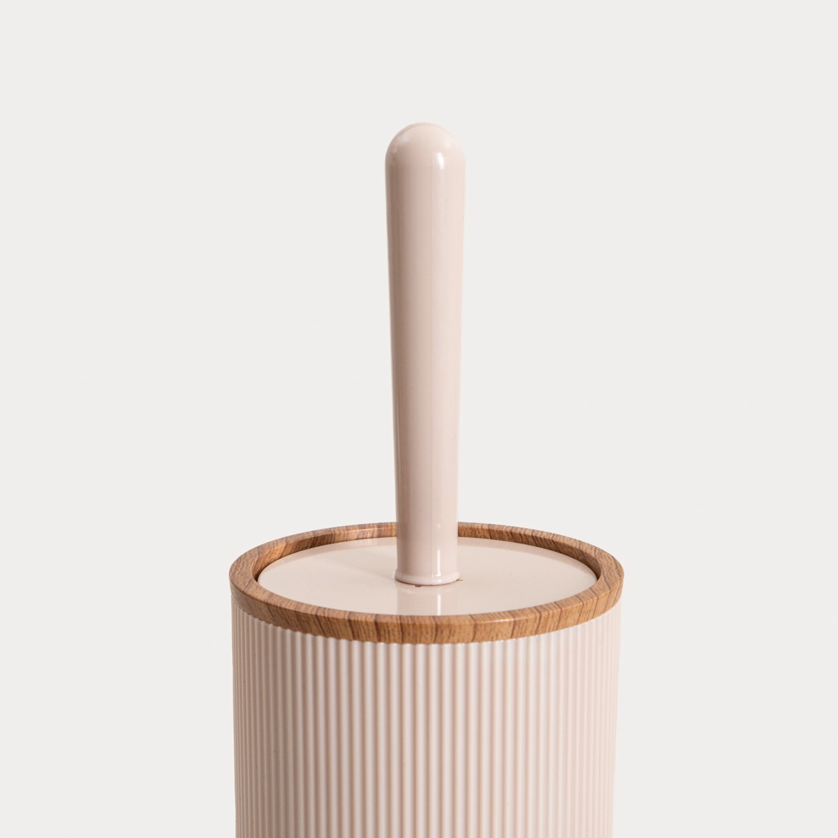 The DIALL toilet brush is a functional and aesthetically pleasing bathroom accessory that combines modern design with everyday convenience. The subtle beige color and the vertical fluting of the container give it an elegant, minimalist look that fits perfectly into modern interior designs. The wood imitation finish adds a warm, decorative touch.