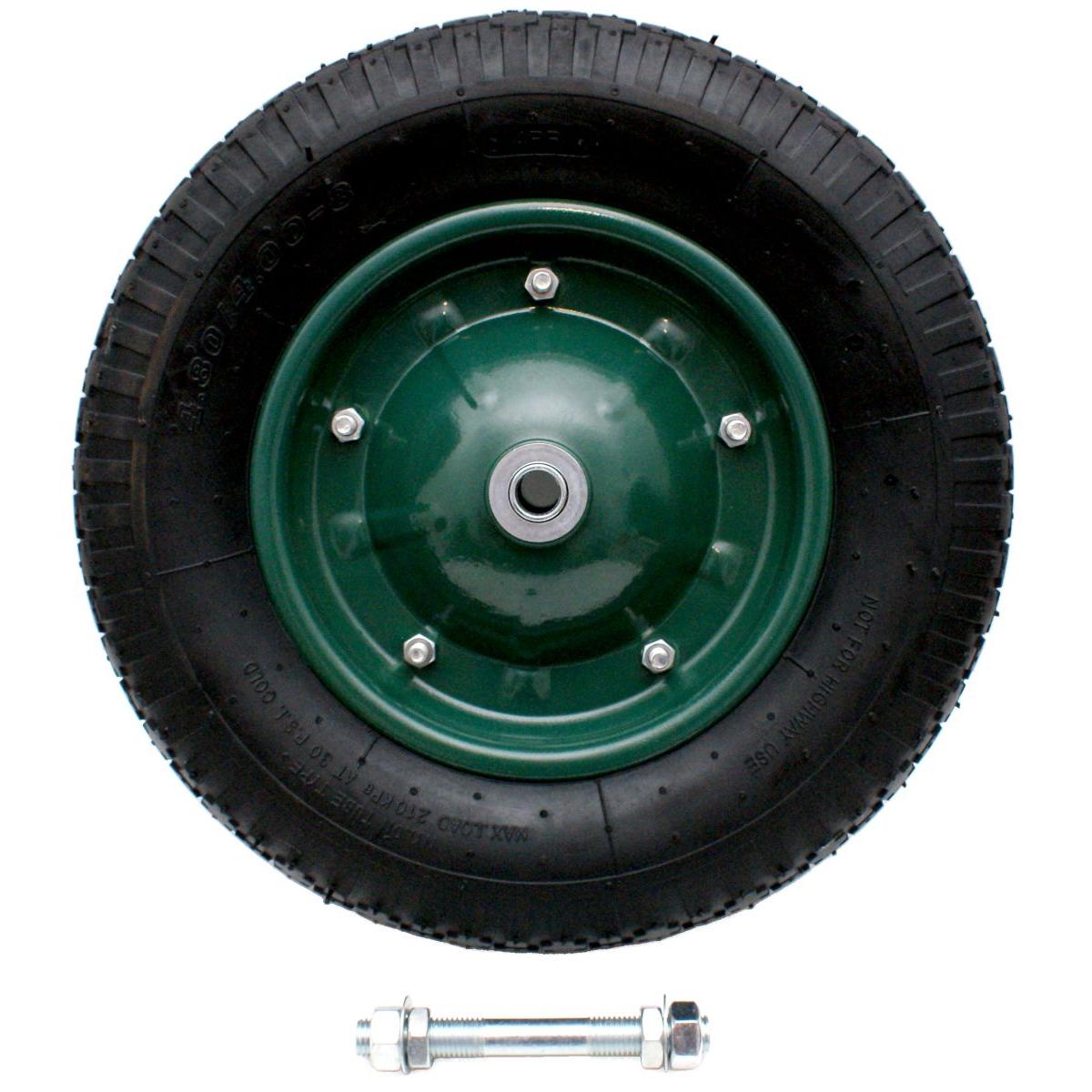 This type of wheel fits most wheelbarrows, garden and transport carts, and the 4.00-8 size is standard and readily available on the market.