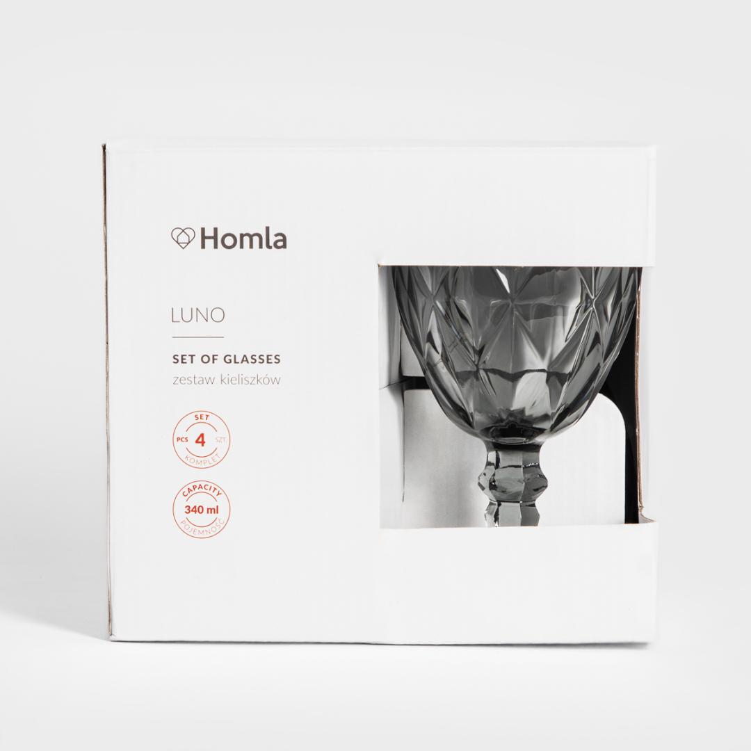 The LUNO set consists of 4 glasses with a capacity of 340 ml. They are intended for serving red and white wine. Their texture resembles real crystal, therefore they look very luxurious and elegant. They are perfect for everyday use and for larger occasions, when you want a stylish table setting.