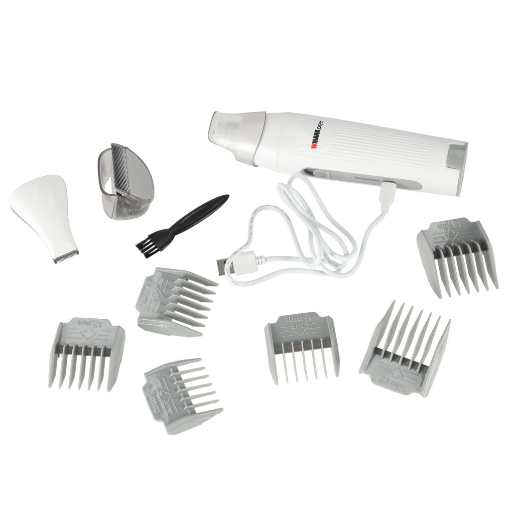 a clipper + six attachments that allow you to adjust the length of the cut (3mm, 6mm, 9mm, 12mm, 18mm and 23mm)