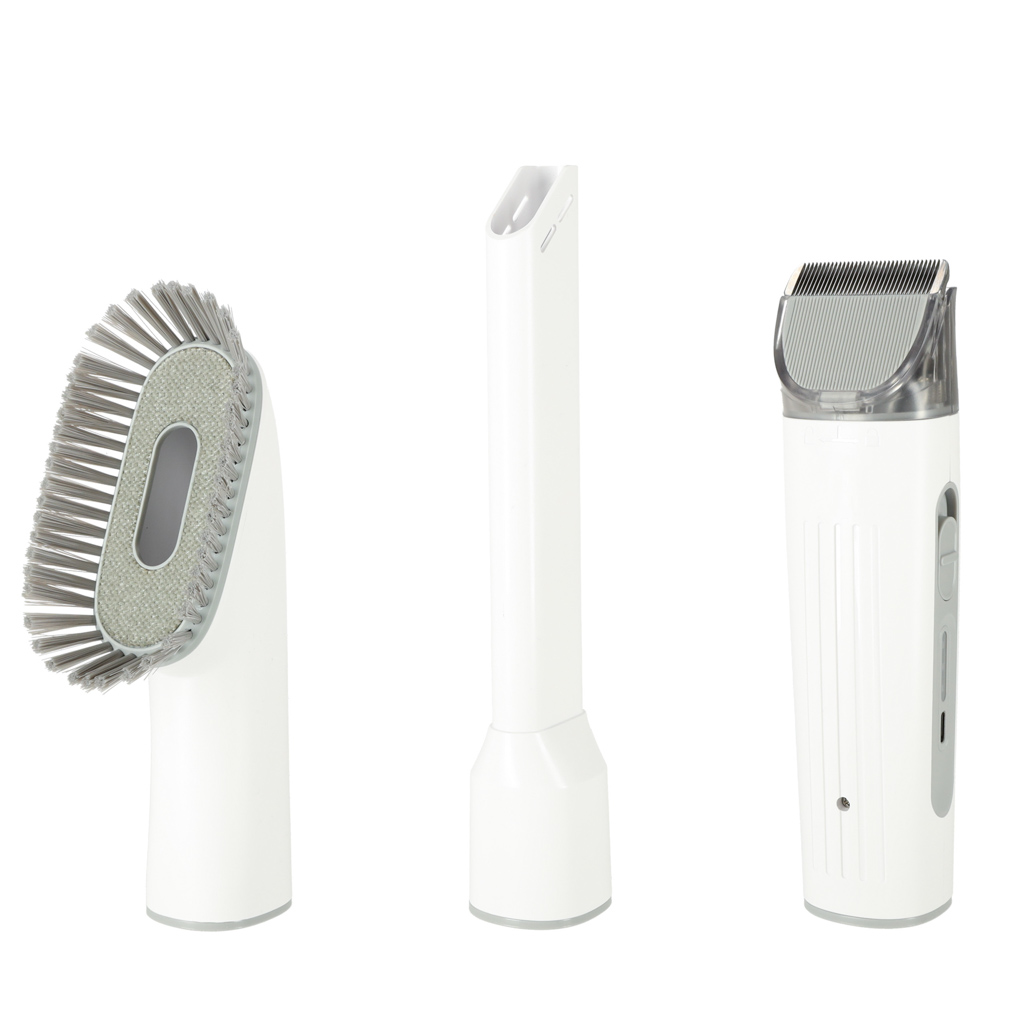 two tips for vacuuming hair: a classic suction tip for larger areas, ideal for carpets and upholstery, and a narrow suction tip for hard-to-reach places, such as recesses in the couch or places under furniture