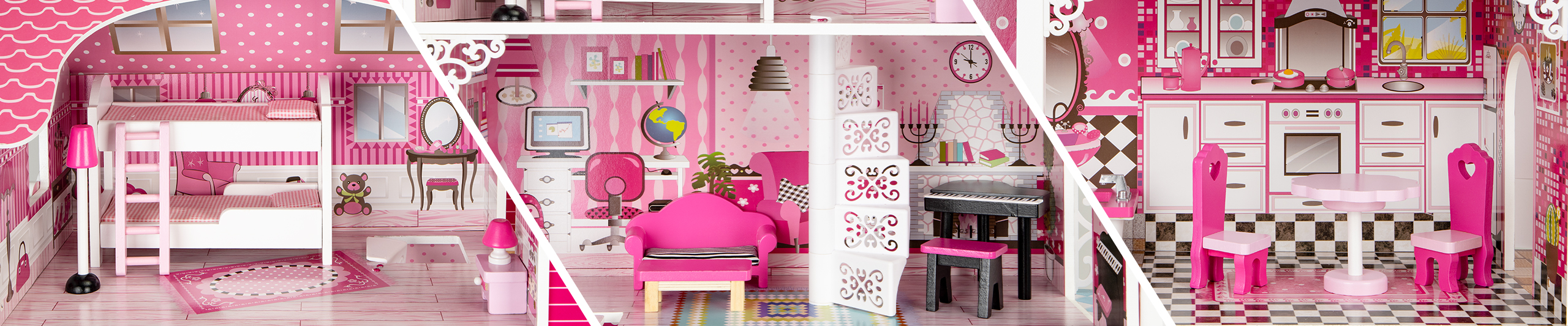 Each room is finished in a different style, matching the decor and furniture to the character and purpose of a given room. However, nothing stands in the way of your child playing interior designer and arranging it their own way.
