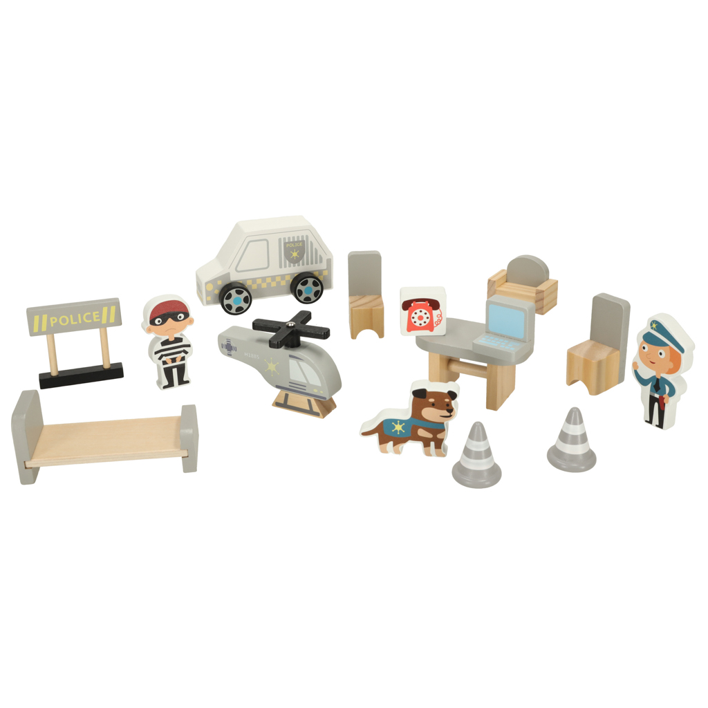 • entirely made of wood – the police station and accessories are made of high quality wood, so that your child can enjoy the toy for as long as possible