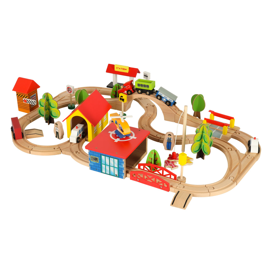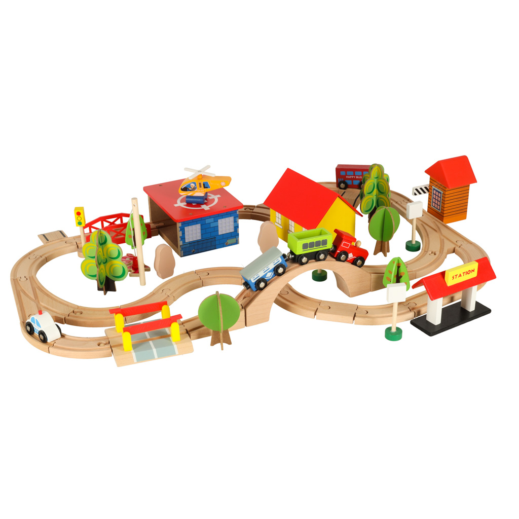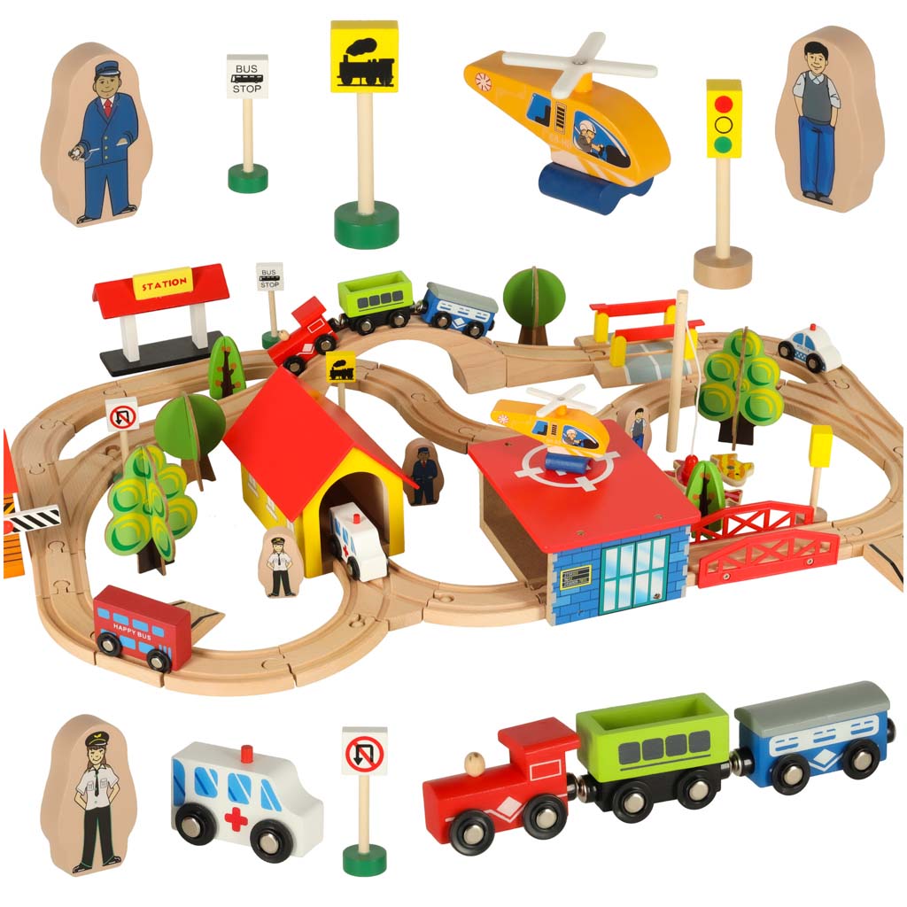 Wooden train locomotive city 69 elementsWooden train locomotive city 69 elements