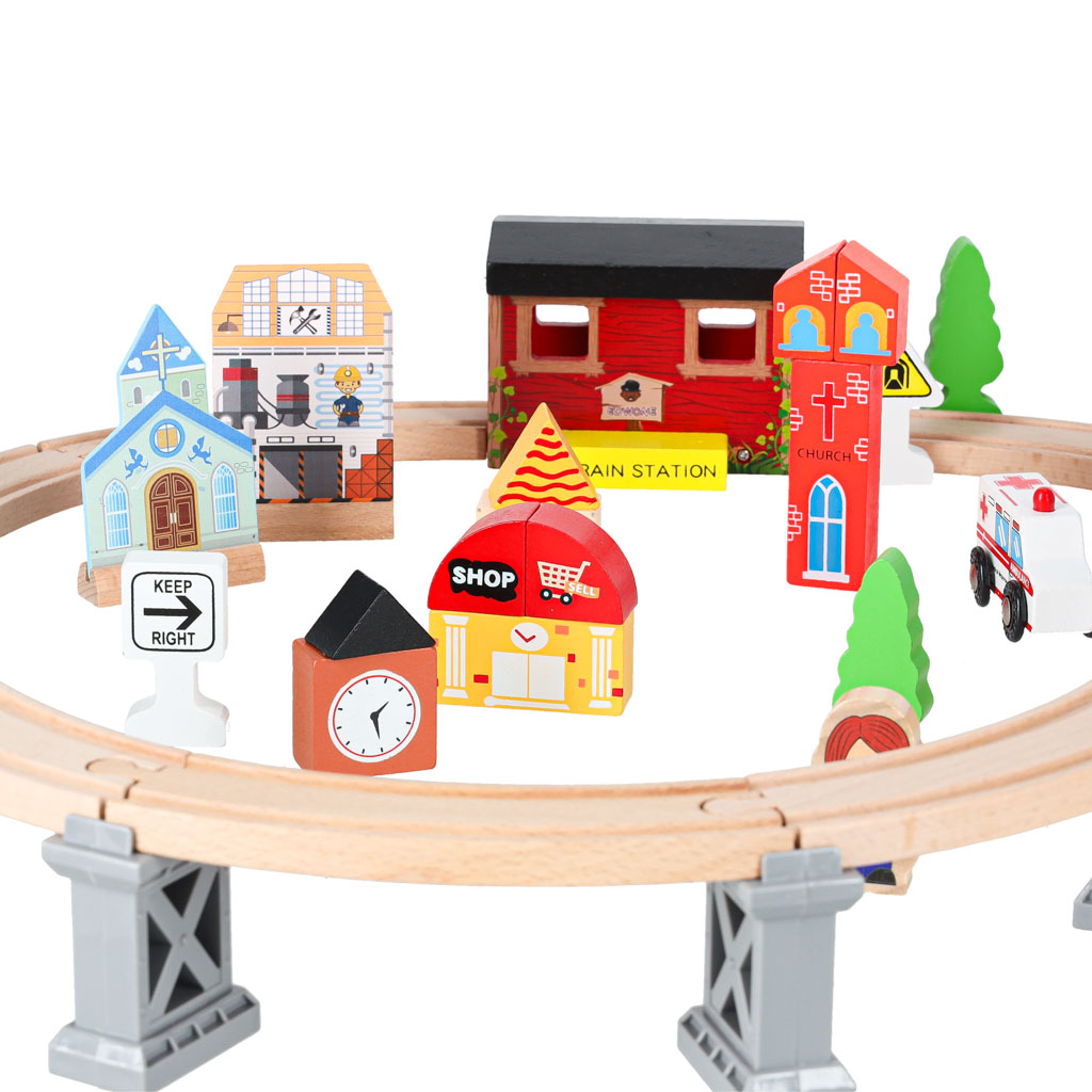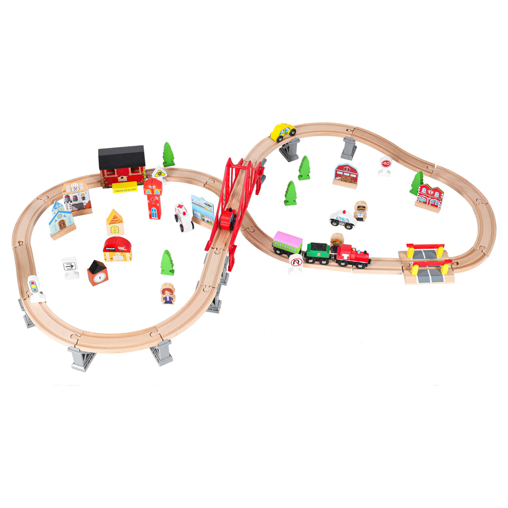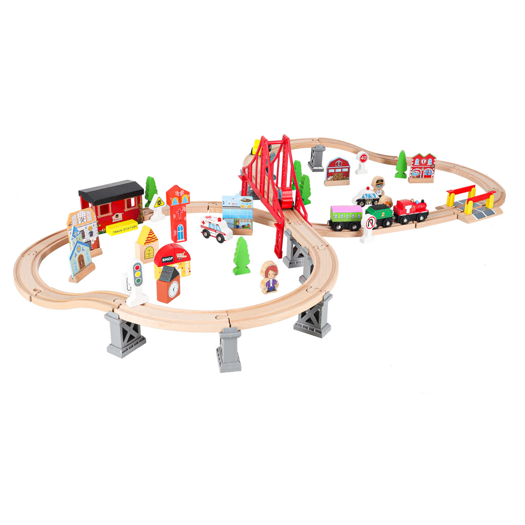 WOODEN TRAIN MDF TRACKS + ACCESSORIES 70EL