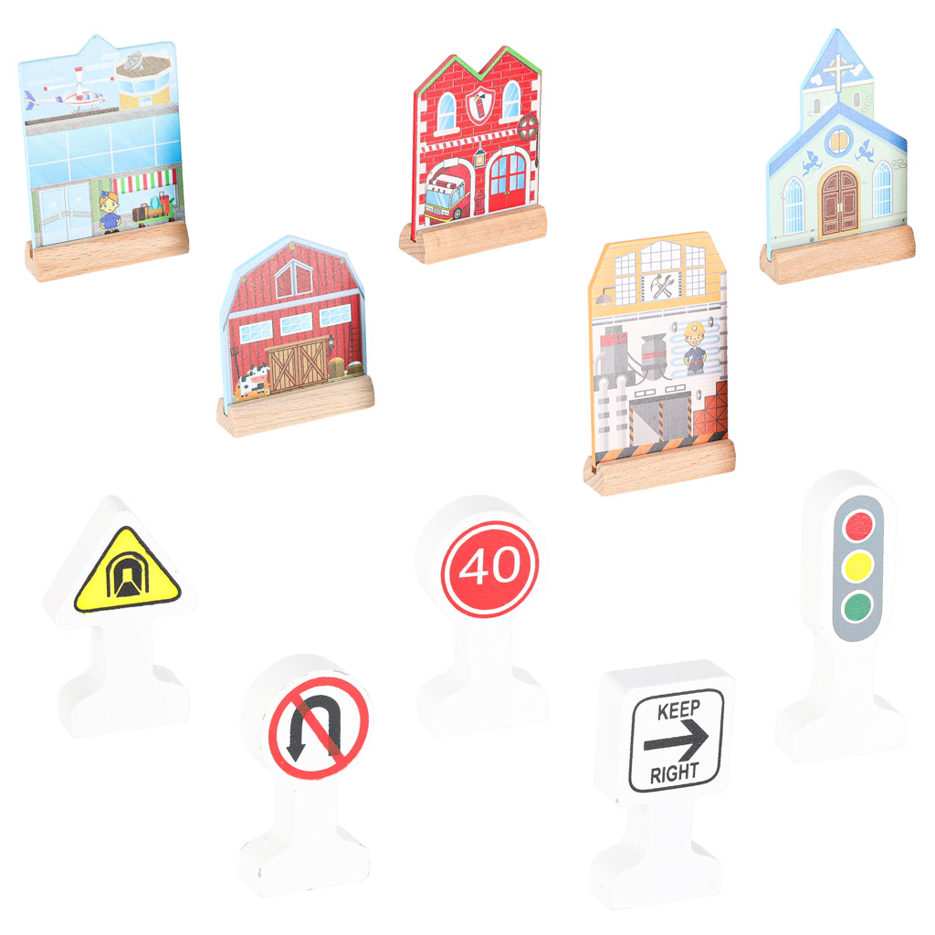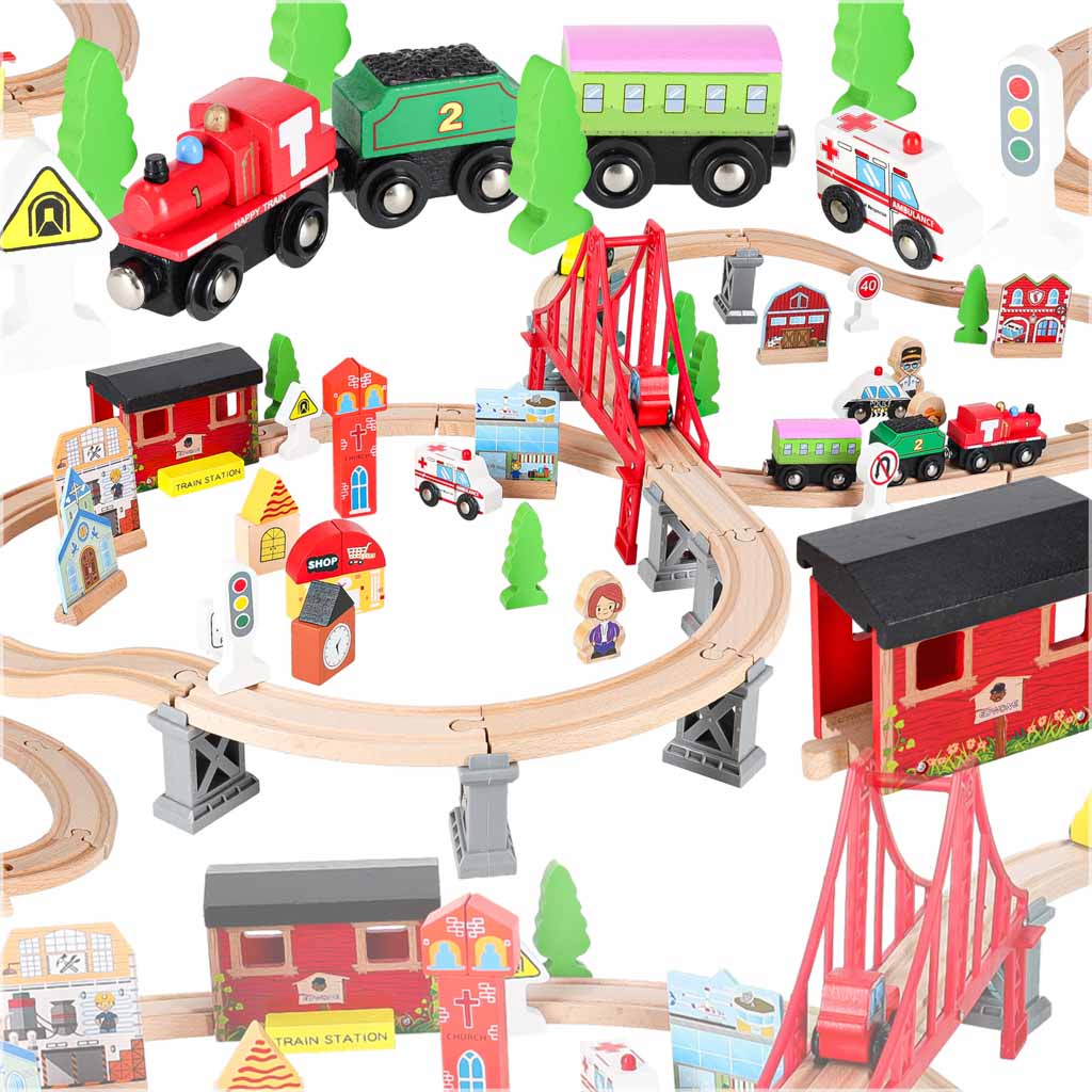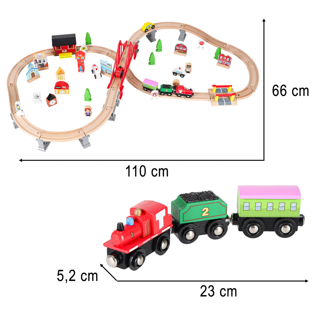 WOODEN TRAIN MDF TRACKS + ACCESSORIES 70EL