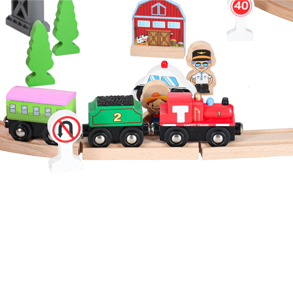 Wooden train train car track 70 elements