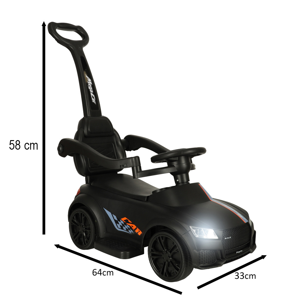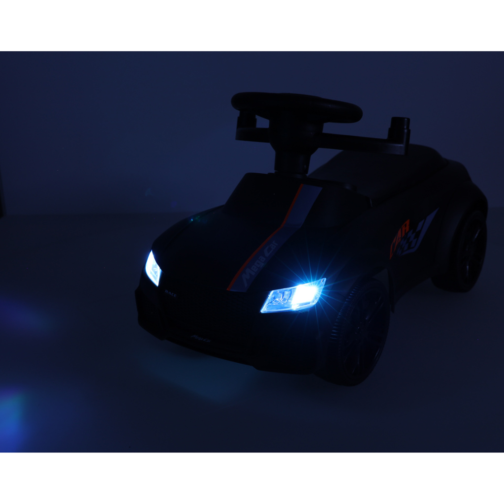 PUSH RIDE AUTOMAŠĪNA AR SKAŅU UN GAISMĀM MELNA