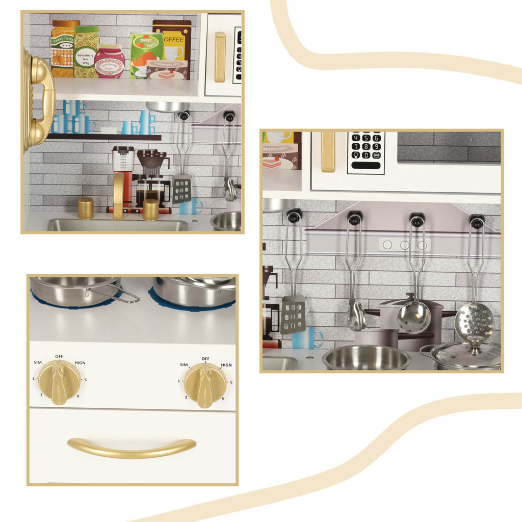– Pilnībā aprīkota mini virtuve – reālistiski elementi bagātina spēli, piešķirot tai autentisku sajūtu un liekot jūsu bērnam justies kā īstā virtuvē.