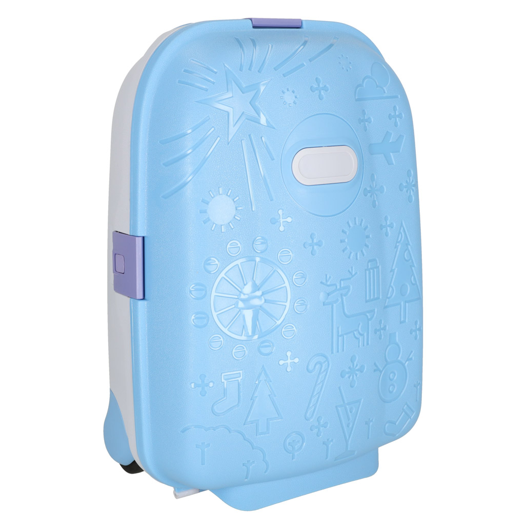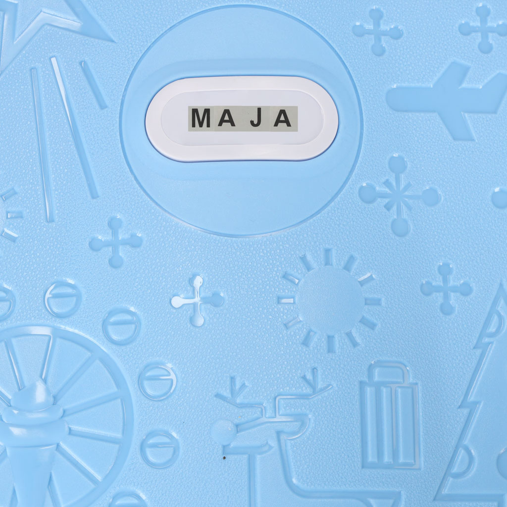 Pašu koferis ir ideāli piemērots ikvienam mazajam ceļotājam, kas gatavs jauniem piedzīvojumiem! Zilā krāsa un interesantie raksti piesaistīs jūsu bērna uzmanību un varbūt pat mudinās viņu iepakot savu. Komplektā ir arī uzlīmes bagāžas parakstīšanai.