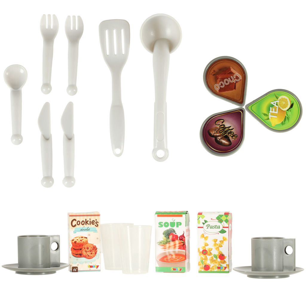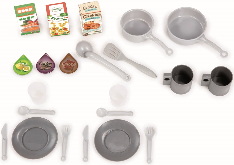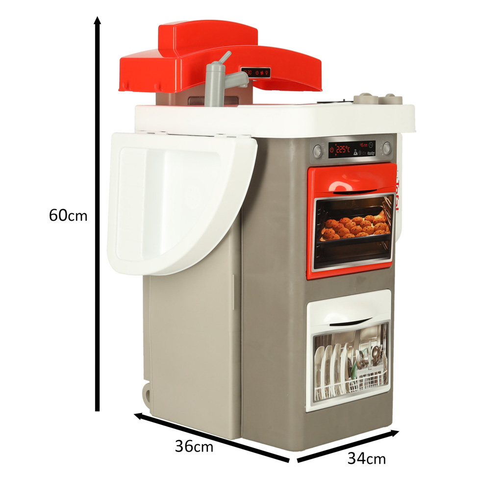 Tefal OpenCook 312202 elektroniskā saliekamā mini virtuve ir ideāls komplekts ēdiena gatavošanas priekam. Virtuvei ir moderns dizains un krāsu gamma. Komplektā ir nepieciešamais aprīkojums un funkcijas, kas rotaļu laiku padara par ikdienā vērojamo un bērniem tik ļoti tīkamo darbību atdarināšanu.
