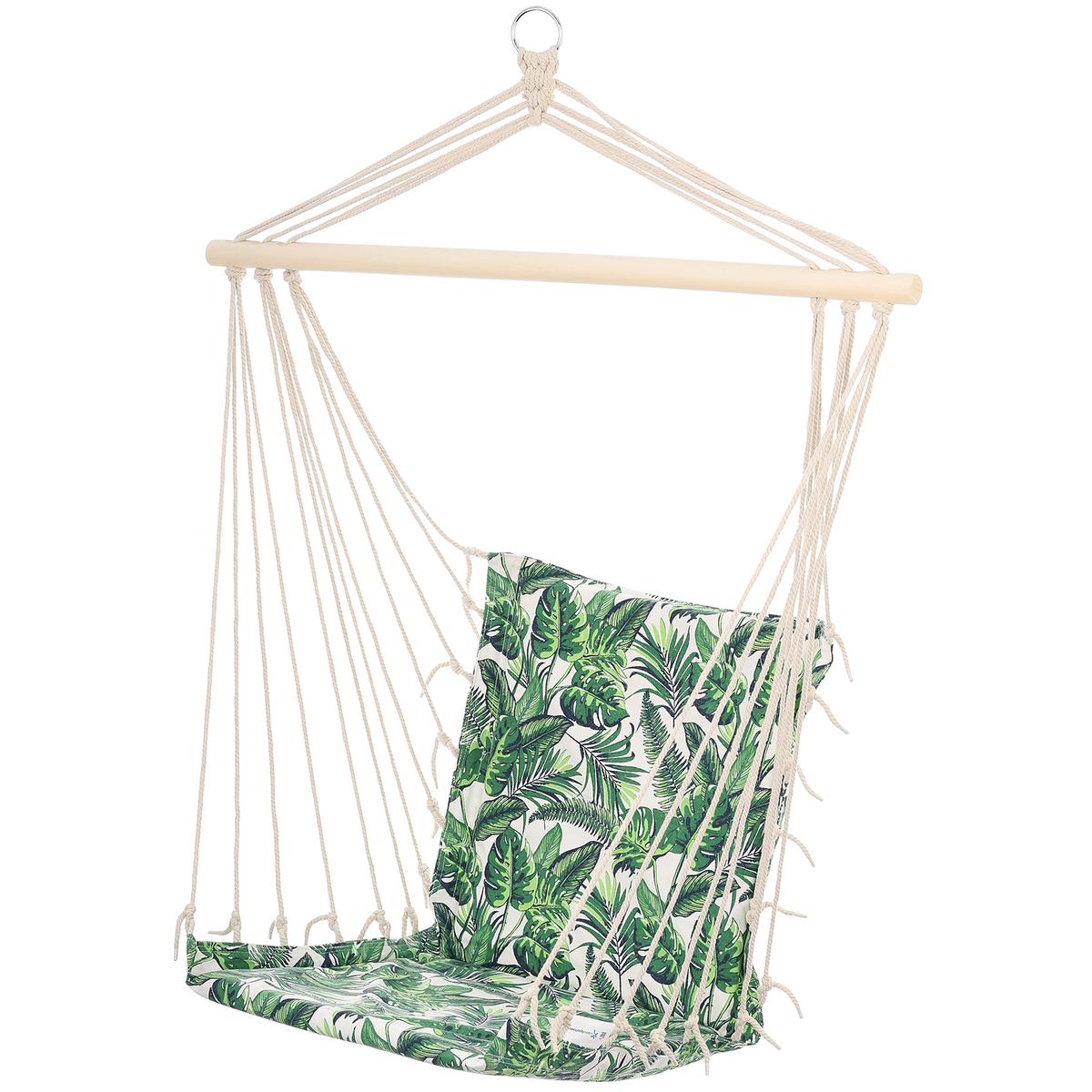 BRAZILIAN NATURA JUNGLE LIGHT HANGING HAMMAK ir lieliska izvēle slinkai vasaras pēcpusdienai dārzā, un ne tikai, jūs varat to izmantot arī mājās uz terases vai balkona. Vienkārši uzstādiet piemērotu āķi, piestipriniet šūpuļtīklu un sāciet atpūsties. Augstas kvalitātes materiāls, atzveltnē un sēdeklī iešūtie putuplasta spilveni un izturīgā konstrukcija ar kravnesību līdz 120 kg nodrošinās jūsu drošību un īpašu komfortu. Atpūtieties visā mūsu ērtajā un stabilajā Brazīlijas šūpuļtīklā. Pārvērtiet dārza gabaliņu vai terasi par miera un klusuma oāzi, jo ar šo šūpuļtīklu atpūta brīvā dabā ir tīrs prieks!