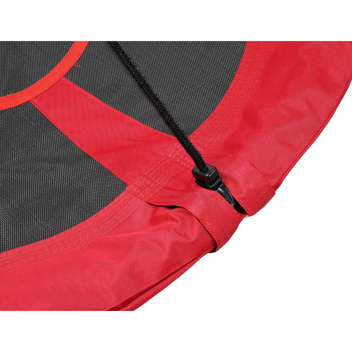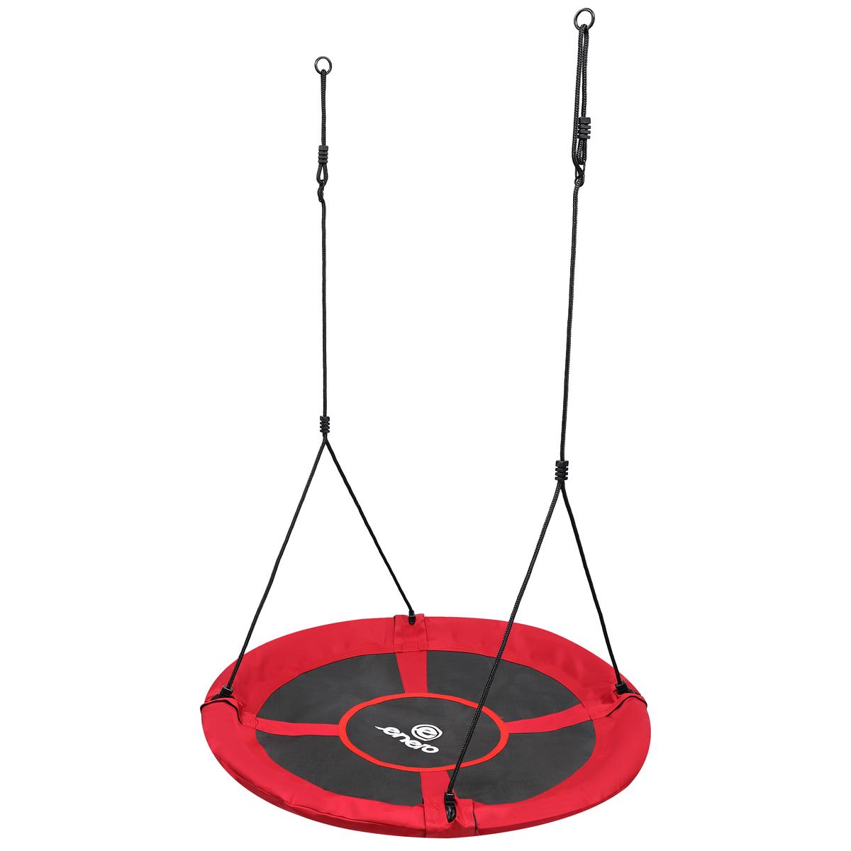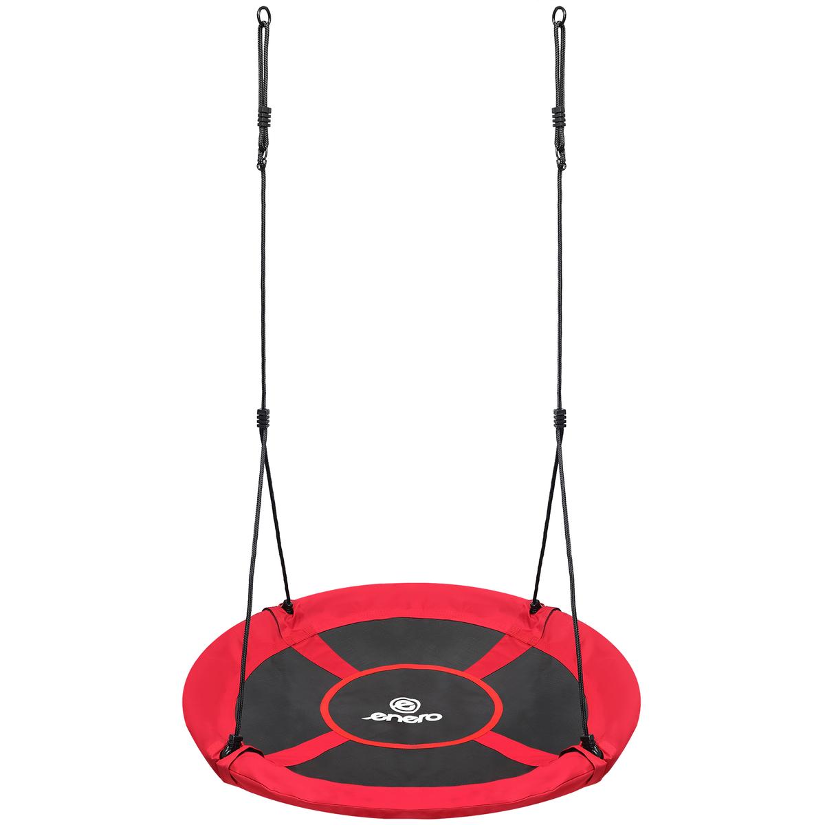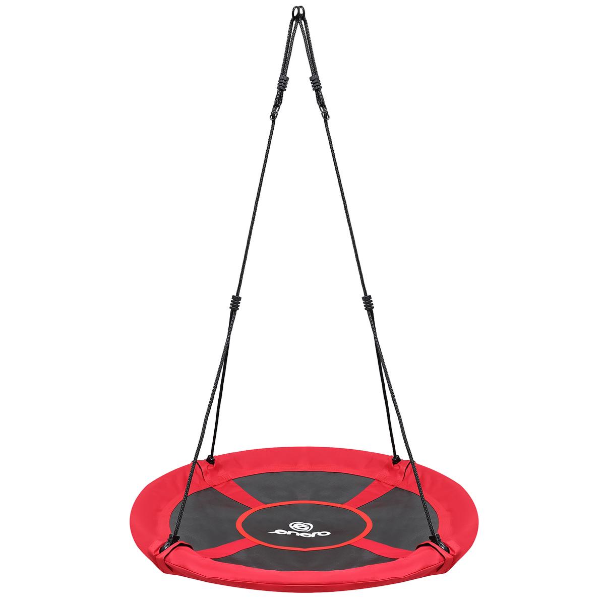 Šūpoļu rāmis ir izgatavots no tērauda caurulēm, kas pārklātas ar mīkstām putām, kuras absorbē vibrācijas un maigi tās apņem. Stingrā konstrukcija, kas piekārta ar biezām 10 mm virvēm, un izturīgais PP sieta sēdeklis ļauj izturēt līdz pat 150 kg lielu slodzi. CE sertifikāts, tāpēc tā ir droša bērniem, kas vecāki par 3 gadiem, un pieaugušajiem.