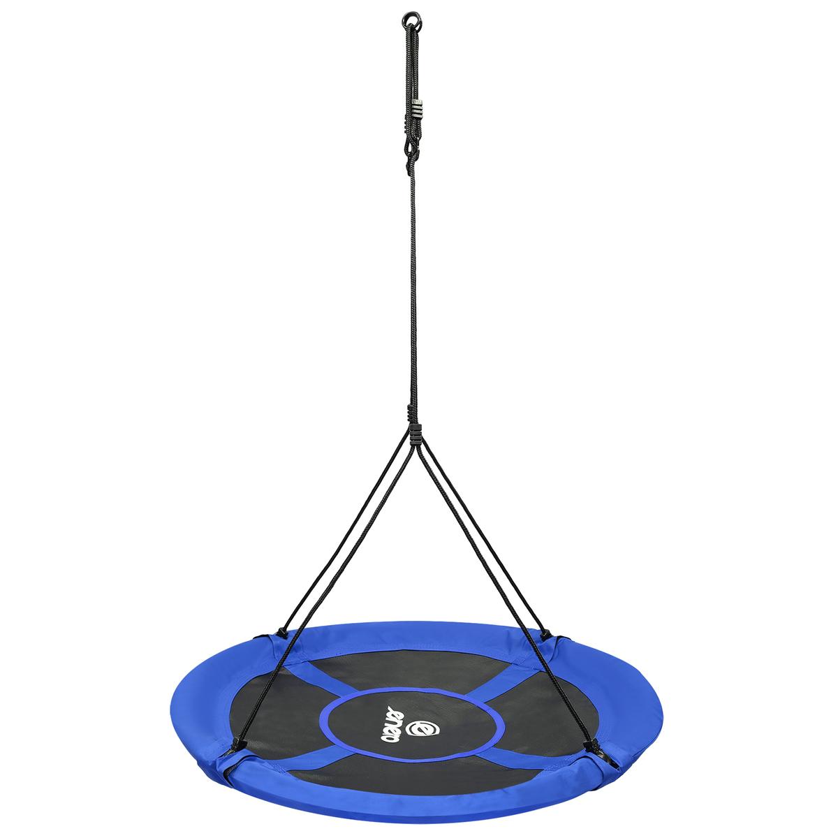Šūpoļu rāmis ir izgatavots no tērauda caurulēm, kas pārklātas ar mīkstām putām, kuras absorbē vibrācijas un maigi tās apņem. Stingrā konstrukcija, kas piekārta ar biezām 10 mm virvēm, un izturīgais PP sieta sēdeklis ļauj izturēt līdz pat 150 kg lielu slodzi. CE sertifikāts, tāpēc tā ir droša bērniem, kas vecāki par 3 gadiem, un pieaugušajiem.