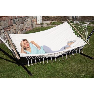 HAMMAKS 2 personām ar pārvalku ir ideāla izvēle slinkai vasaras pēcpusdienai dārzā. Augstas kvalitātes materiāls un izturīgā konstrukcija ar kravnesību līdz 150 kg nodrošinās ne tikai jūsu drošību, bet arī ārkārtīgu komfortu. Tas ir ļoti viegls, iesaiņots kokvilnas pārvalkā, tāpēc to var ņemt līdzi praktiski jebkur, un īpaši izturīgais materiāls nodrošinās saldu slinkumu daudzus gadus. Atpūtieties visā komfortablā un stabilā šūpuļtīklā CLASSIC 2 OS. Pārvērtiet zāles pleķīti par miera un klusuma oāzi. Ar šo šūpuļtīklu atpūta svaigā gaisā ir tīrs prieks!