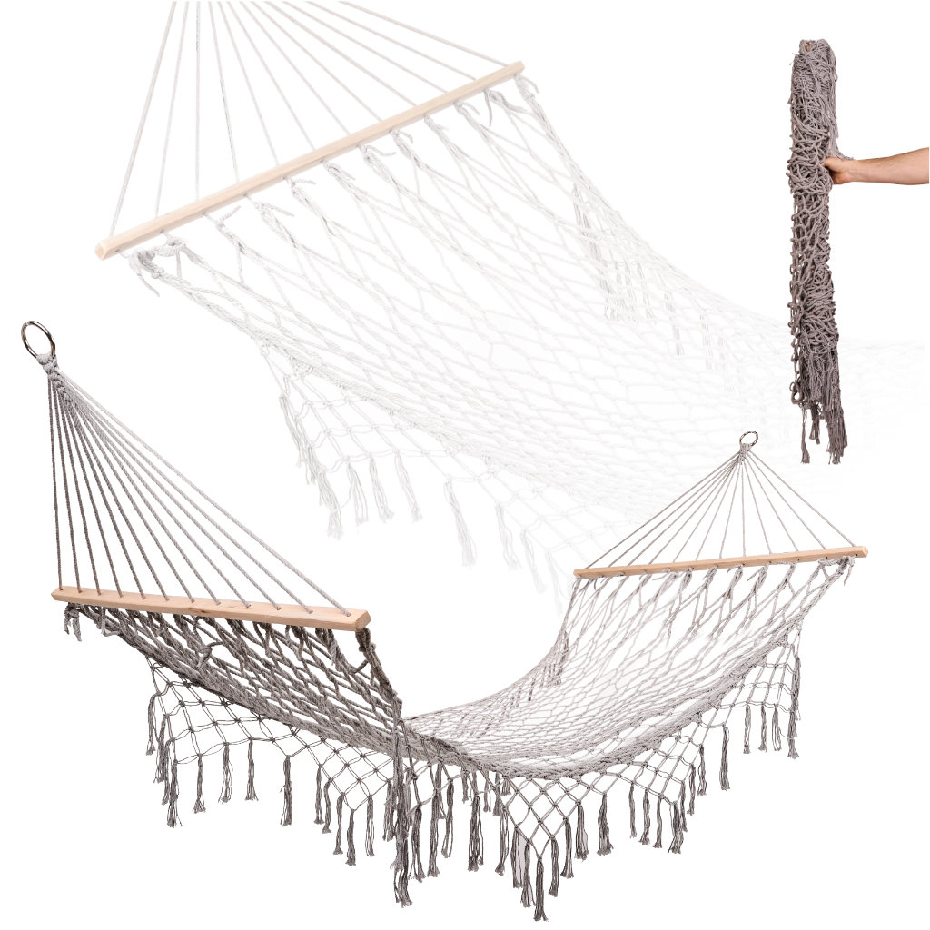 Pārvērtiet savu dārzu par burvīgu atpūtas vietu. Izvēlieties kvalitāti, stilu un funkcionalitāti – izvēlieties boho tīkla dārza šūpuļtīklu ar bārkstīm un izbaudiet atpūtu dārzā, kas priecēs ne tikai jūs, bet arī jūsu viesus.