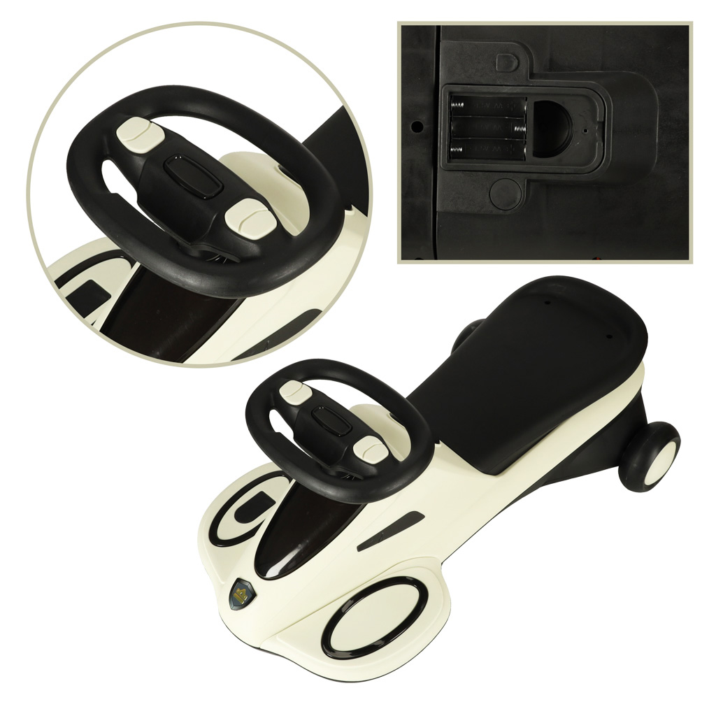 Jūs varat būt droši par sava mazuļa drošību rotaļu laikā – braucamrīkam ir plaši izvietoti aizmugurējie riteņi, kas transportlīdzeklim piešķir stabilitāti, un kāju balstiem ir pretslīdēšanas elementi. Gaismas riteņi un mūzika padara braukšanu fantastisku piedzīvojumu!