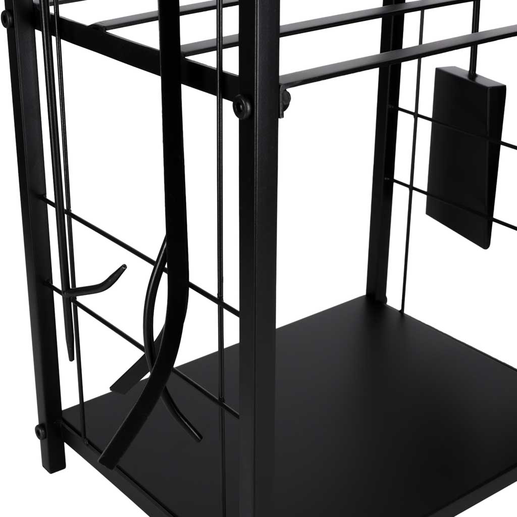 Šajā malkas statīvā ar piederumiem katra detaļa ir pārdomāta unfunkcionāla. Jums vienmēr būs pa rokai jūsu kamīnapiederumi, un īpašā vieta kamīna piederumu glabāšanai nodrošinās perfektu kārtību ap ugunskuru. Turklāt konstrukcija nodrošina stabilitāti arī tad, kad tajā uzglabājat malku, tāpēc viss komplekts paliekpraktisks, harmonisks un pārsteidzoši vizuāli viegls.
