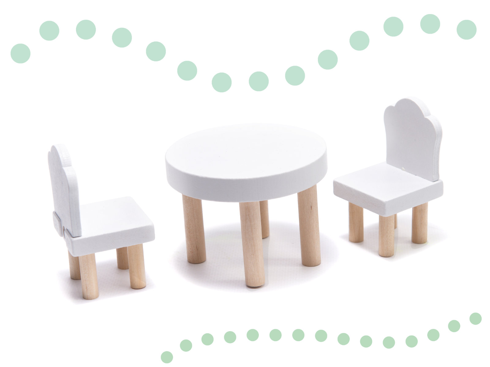 Spēlējoties ar koka mājiņu, bērns attīsta iztēli un stimulē roku prasmes. Spēlējot dažādas lomas, bērns apgūst sociālās prasmes, kas noderēs pieaugušo dzīvē.