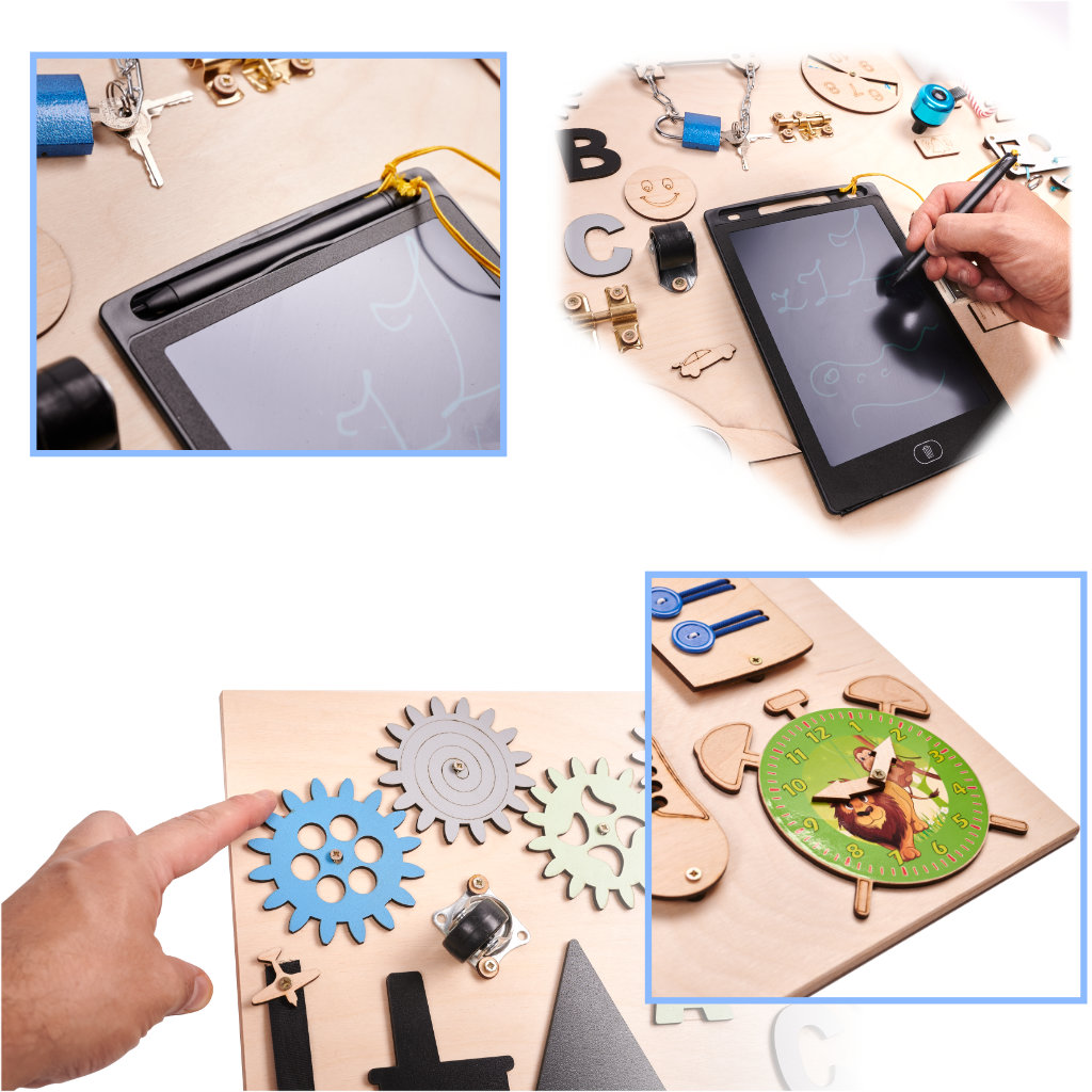 Turklāt, spēlējoties ar manipulatīvo tāfeli, tiek vingrināta arī koncentrēšanās, acu un roku koordinācija, rosināta iztēle un mācīta cēloņu un seku domāšana. Secinājums ir vienkāršs – šī rotaļlieta sniedz tikai ieguvumus!