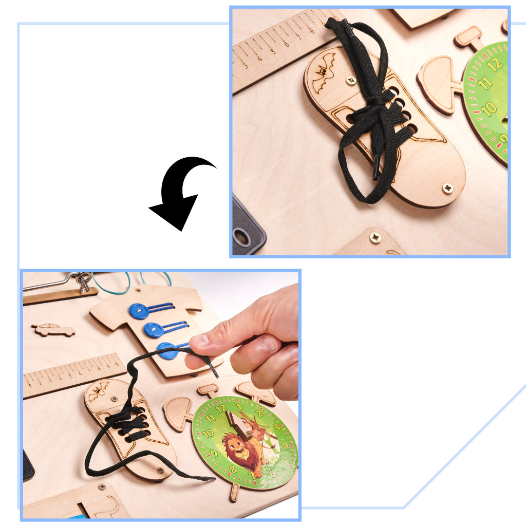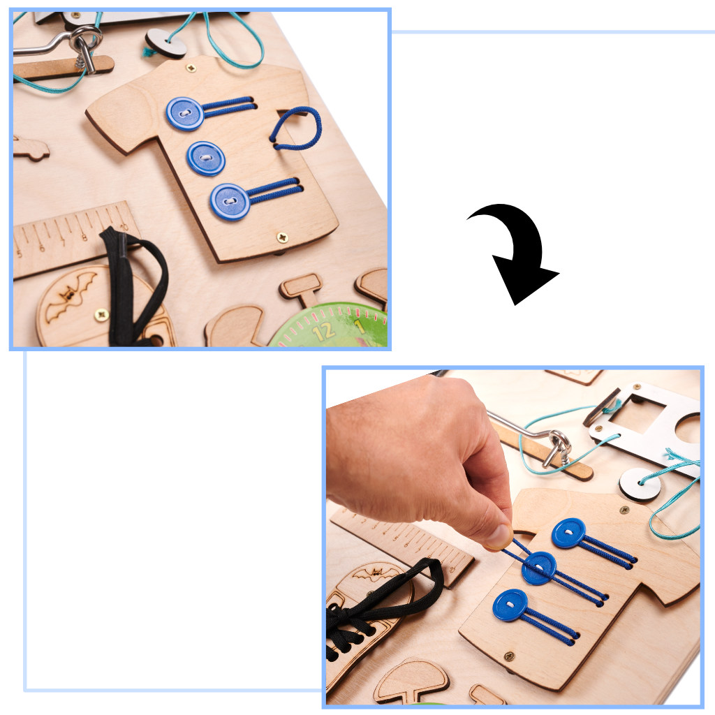Pārvietošana, bīdīšana, šņorēšana, pārslēgšana, pagriešana utt. ir fantastisks veids, kā trenēt manuālās prasmes, kas noteikti būs ļoti noderīgas nākotnē, piemēram, mācoties rakstīt.