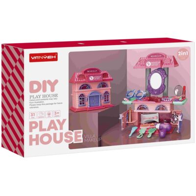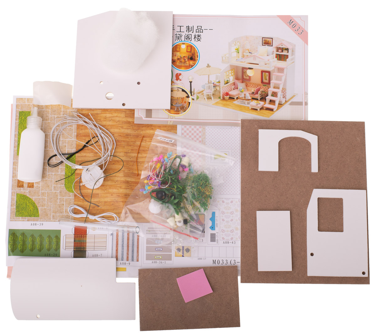 Leļļu mājas koka modelis LED 19,5cm, kas ir paredzēts montāžai