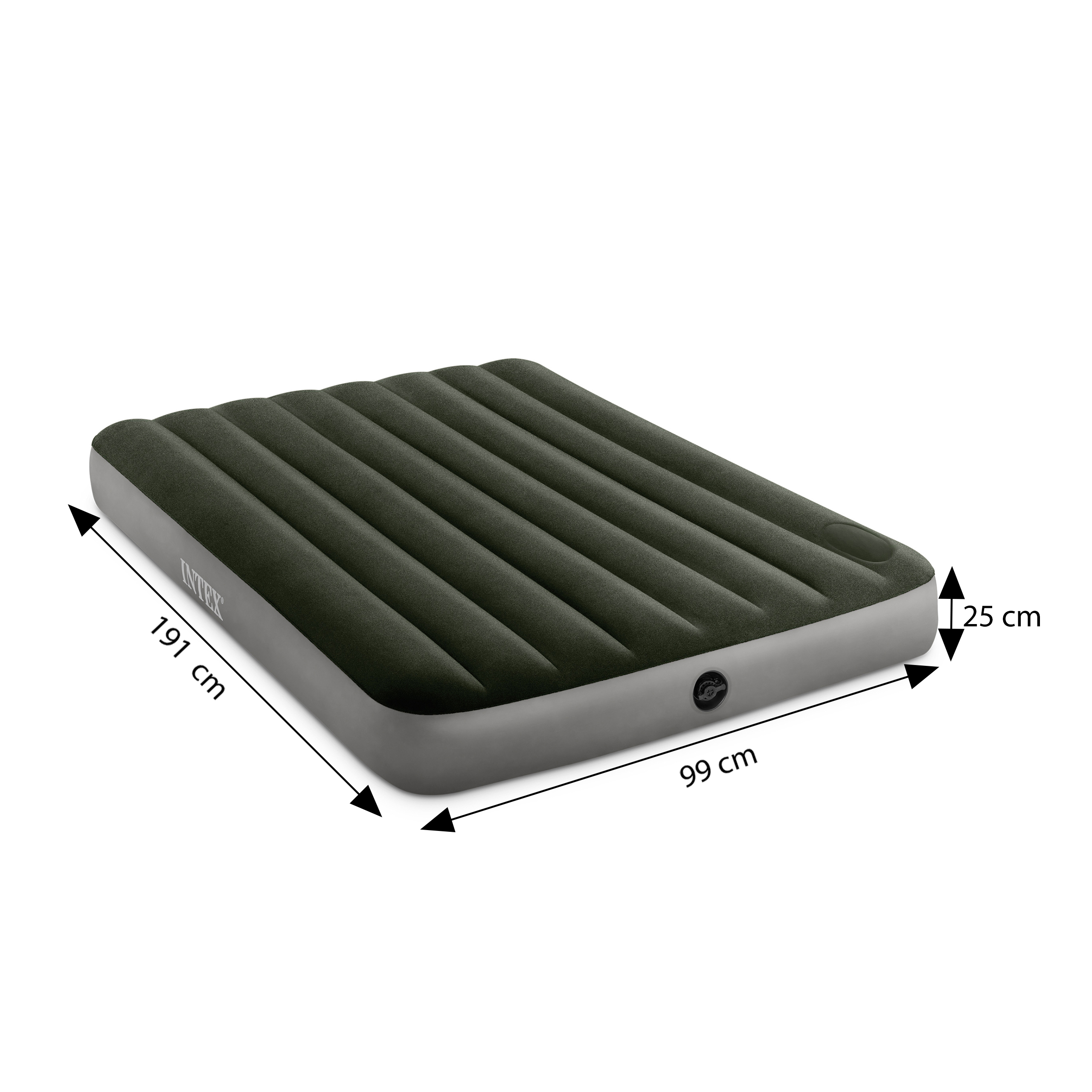 INTEX velūra matracis ar izmēriem 191x99x25 cm ir ideāli piemērots atpūtai vienam cilvēkam. Izgatavots no izturīga PVC materiāla, virsma ir pārklāta ar pieskārienam mīkstu, ūdensnecaurlaidīgu velūra audumu. Tā patīkamā zaļā krāsa padara to piemērotu jebkuram interjeram.