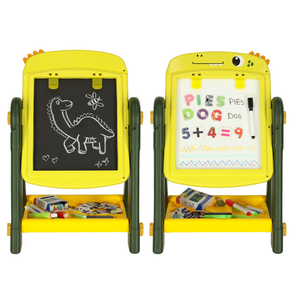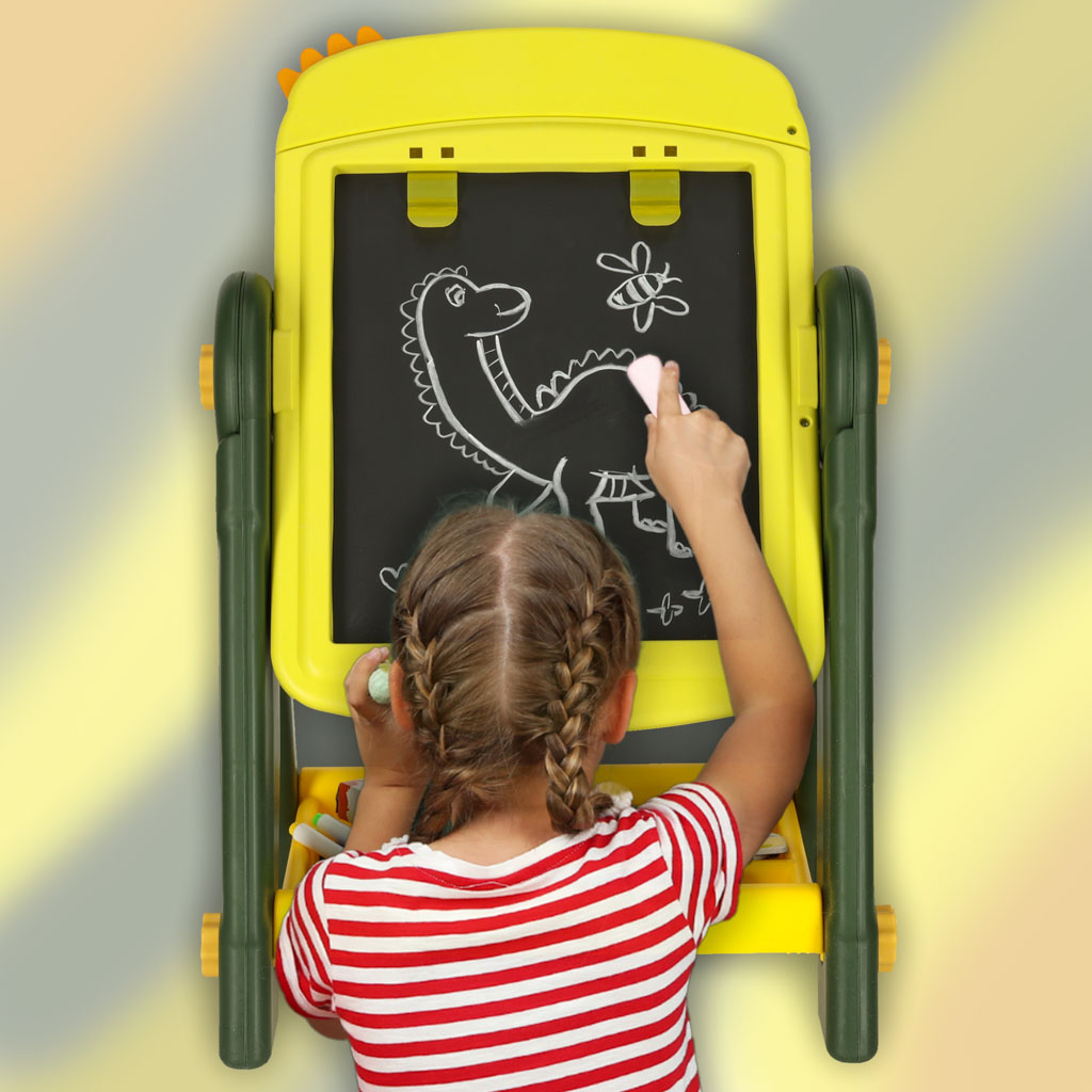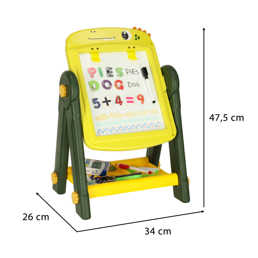 Atkarībā no vajadzības jūsu bērns var izmantot magnētiskās sausās tīrīšanas tāfeles virsmu, lai vingrinātos rakstīt vai mācītos skaitīt ar krāsaino magnētu palīdzību. Kad viņam rodas vēlme zīmēt ar krītu, atliek tikai apgriezt tāfeli. Tieši tas padara to praktisku un daudzpusīgu.
