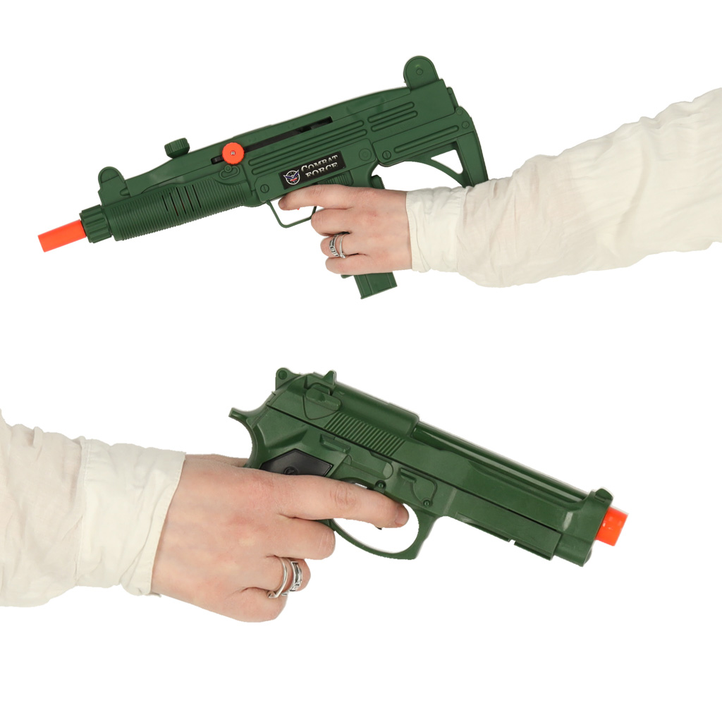 Šis komplekts ar šauteni un aksesuāriem izskatās kā īsts taktiskais ekipējums – tieši tāpēc tas tik ļoti stimulē iztēli un veicina radošas, dinamiskas rotaļas.